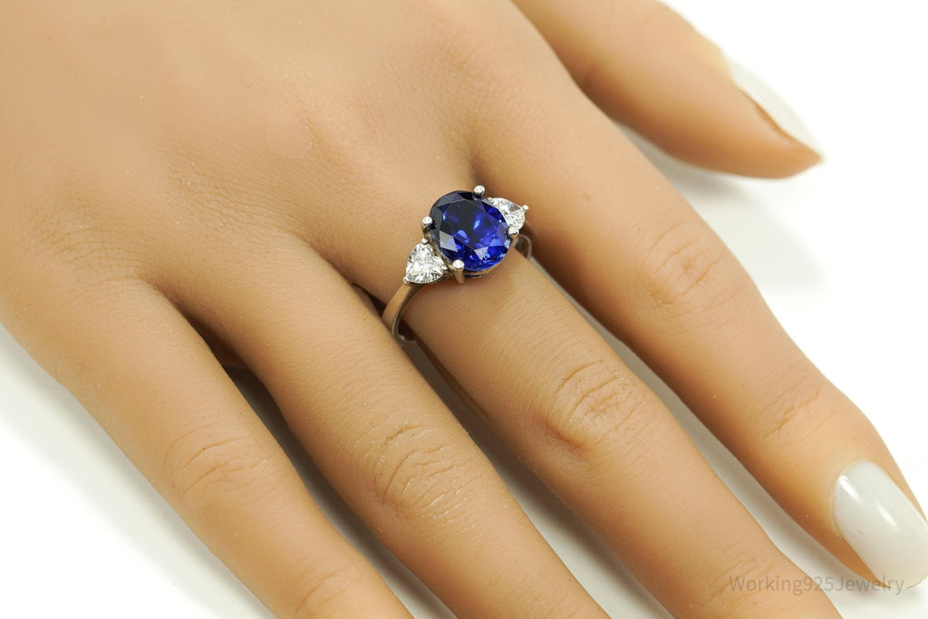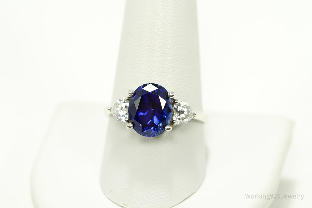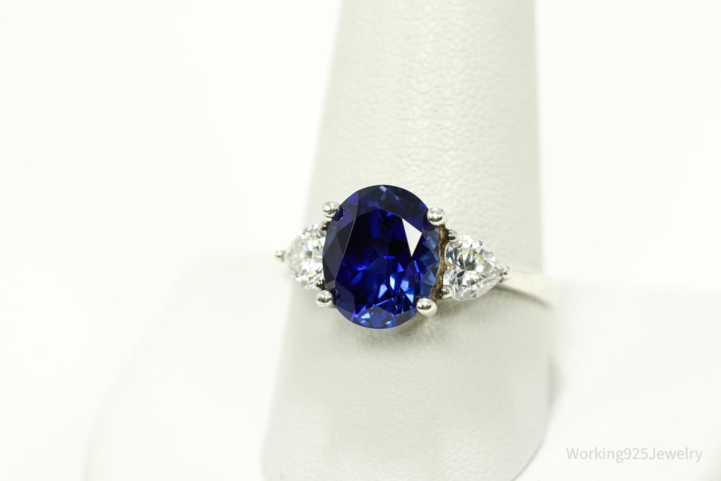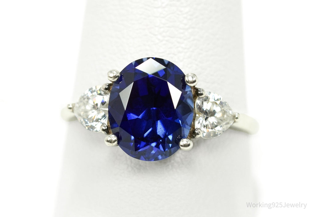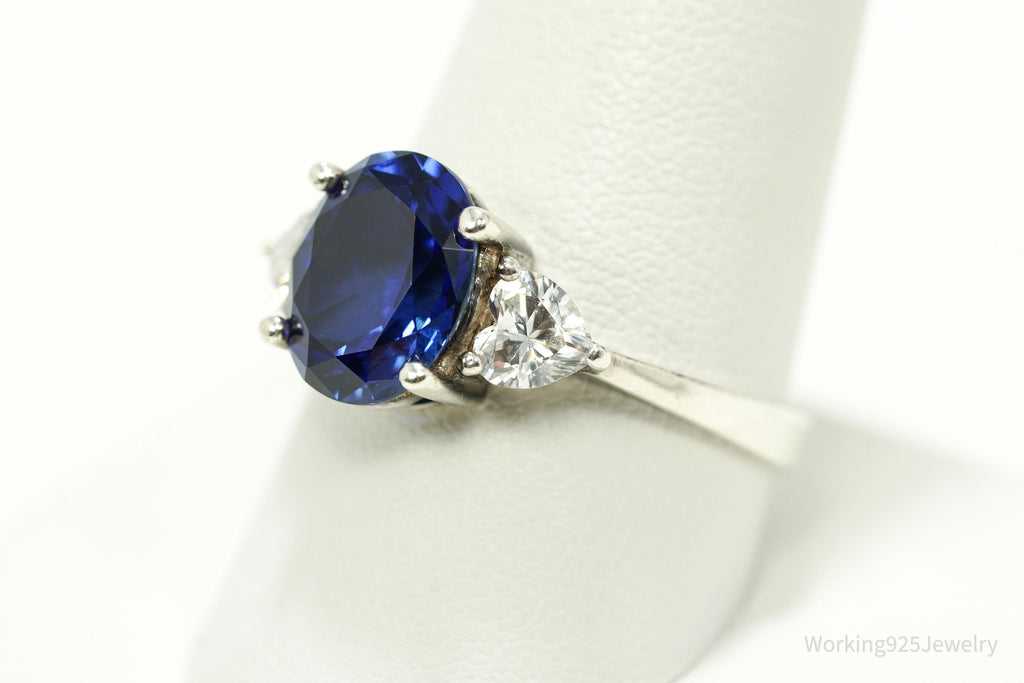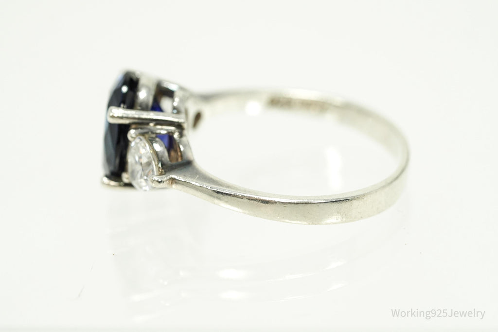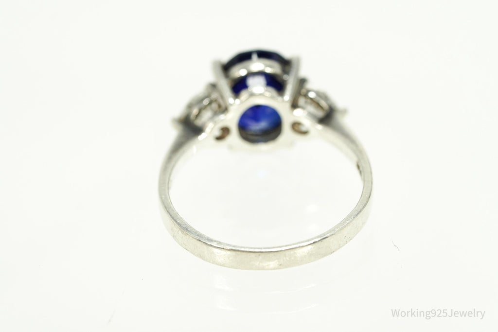 Vintage Lab Sapphire & Cubic Zirconia Sterling Silver Ring - Size 10.25
