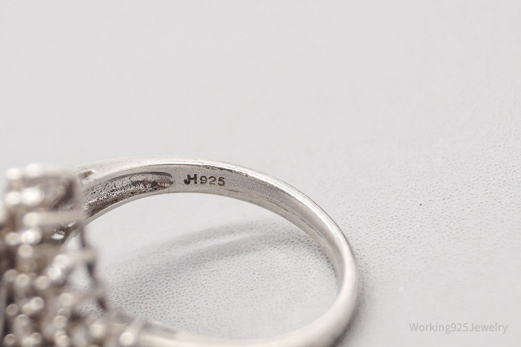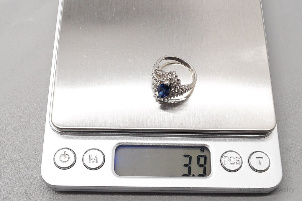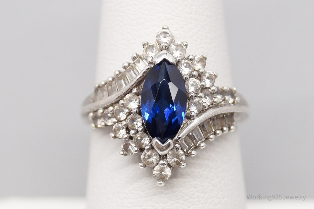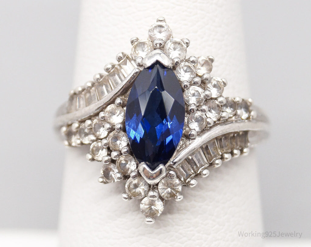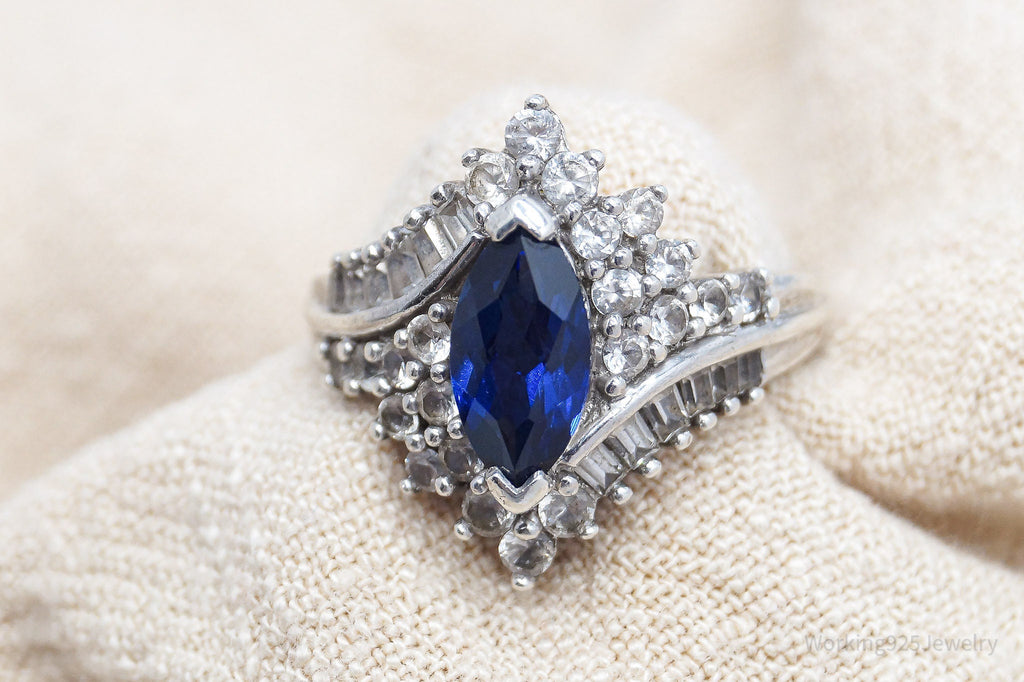 Vintage Lab Sapphire Cubic Zirconia Sterling Silver Ring - Size 6.75