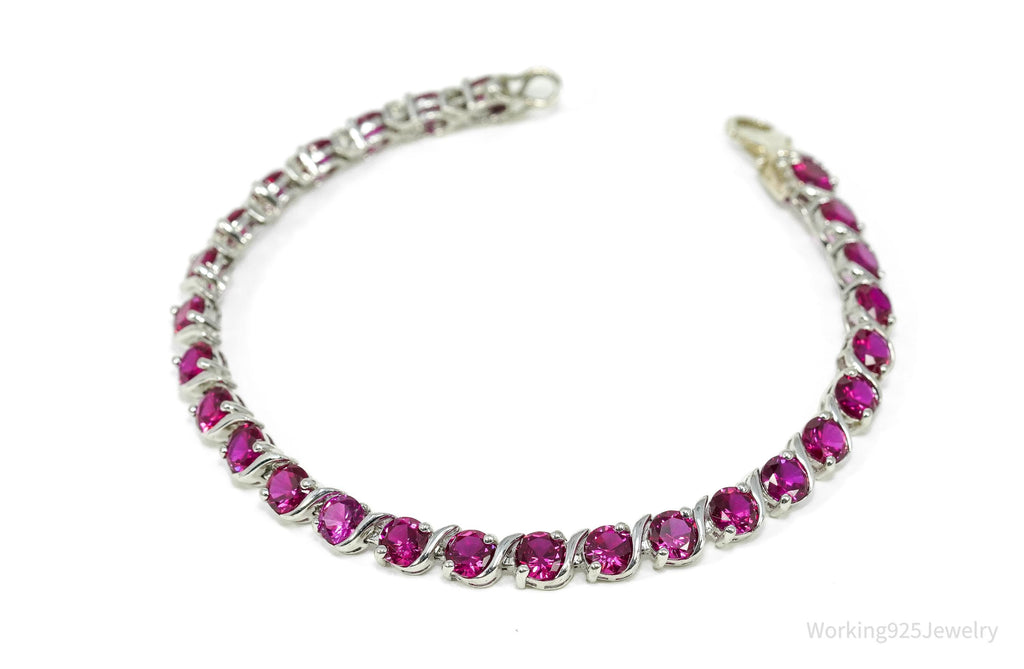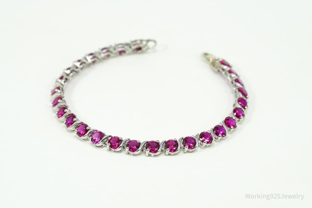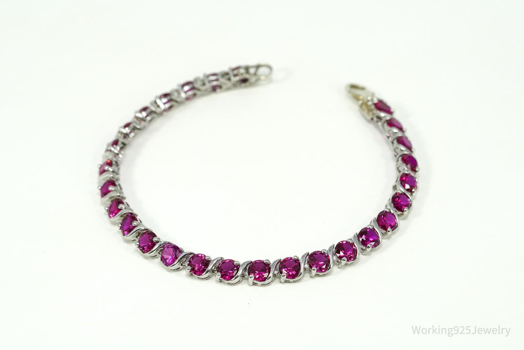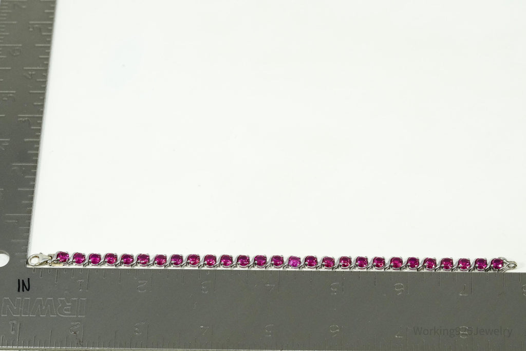 Vintage Lab Treated Ruby Sterling Silver Tennis Bracelet 7 5/8"