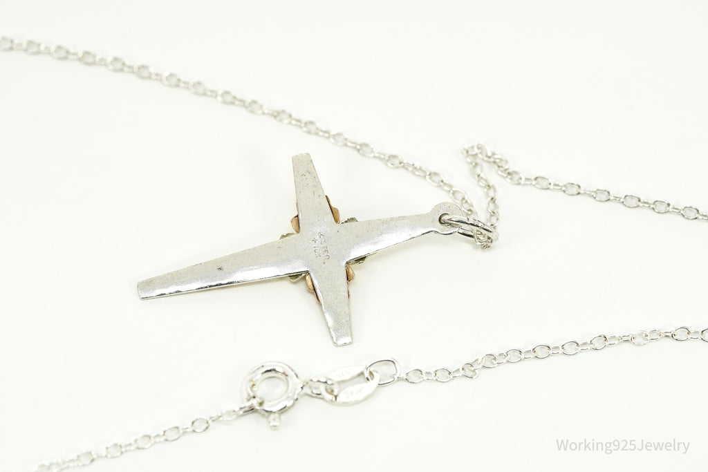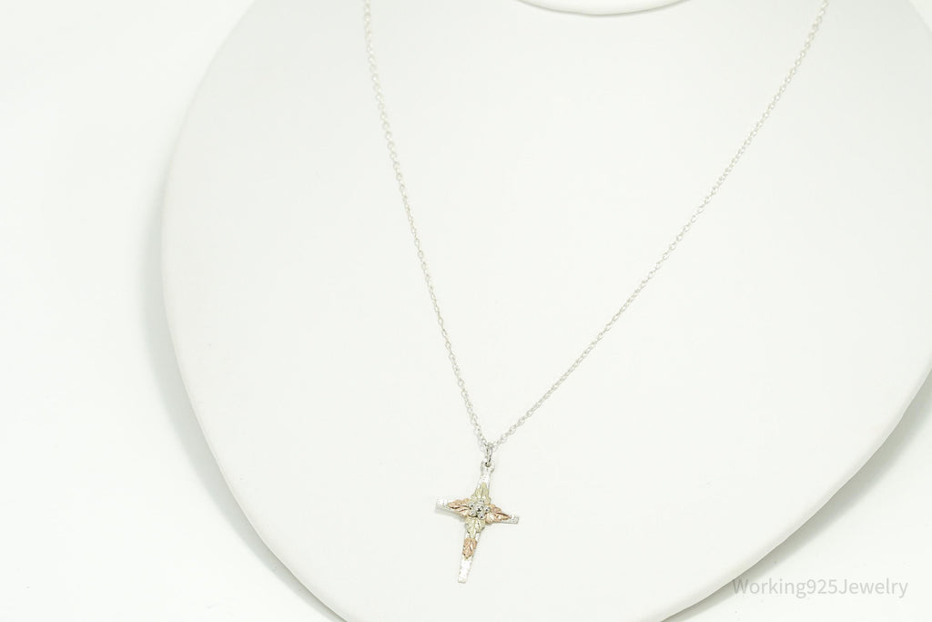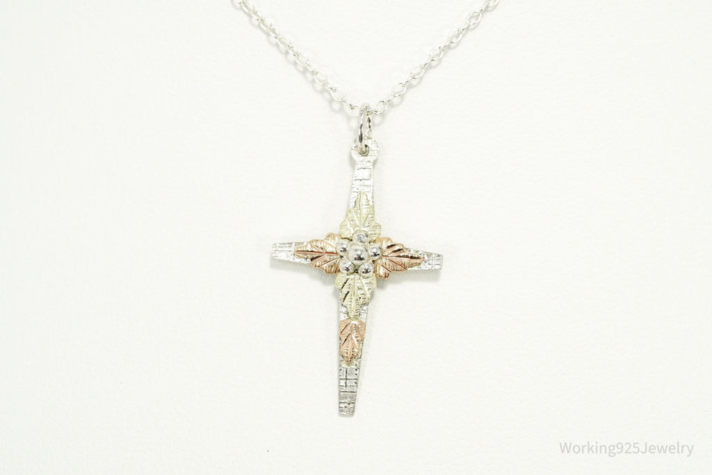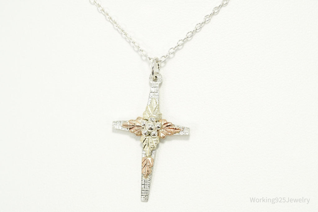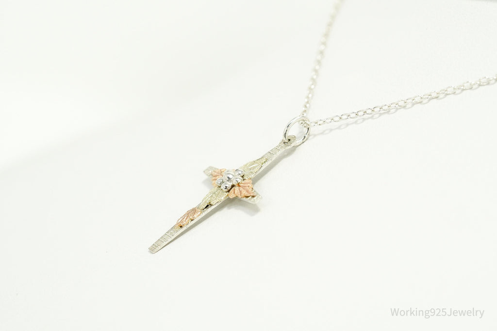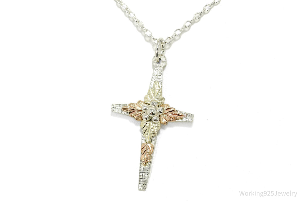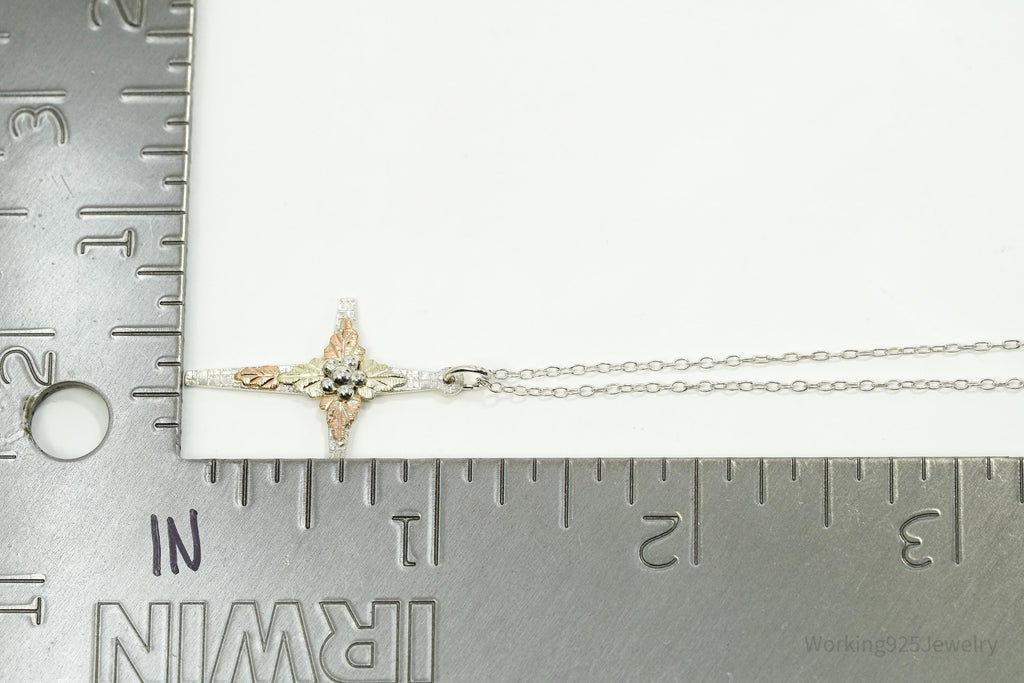 Vintage Landstrom's 10K Black Hills Gold Leaves Sterling Silver Cross Necklace 18"