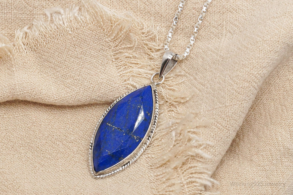 Vintage Lapis Lazuli Sterling Silver Necklace 24"