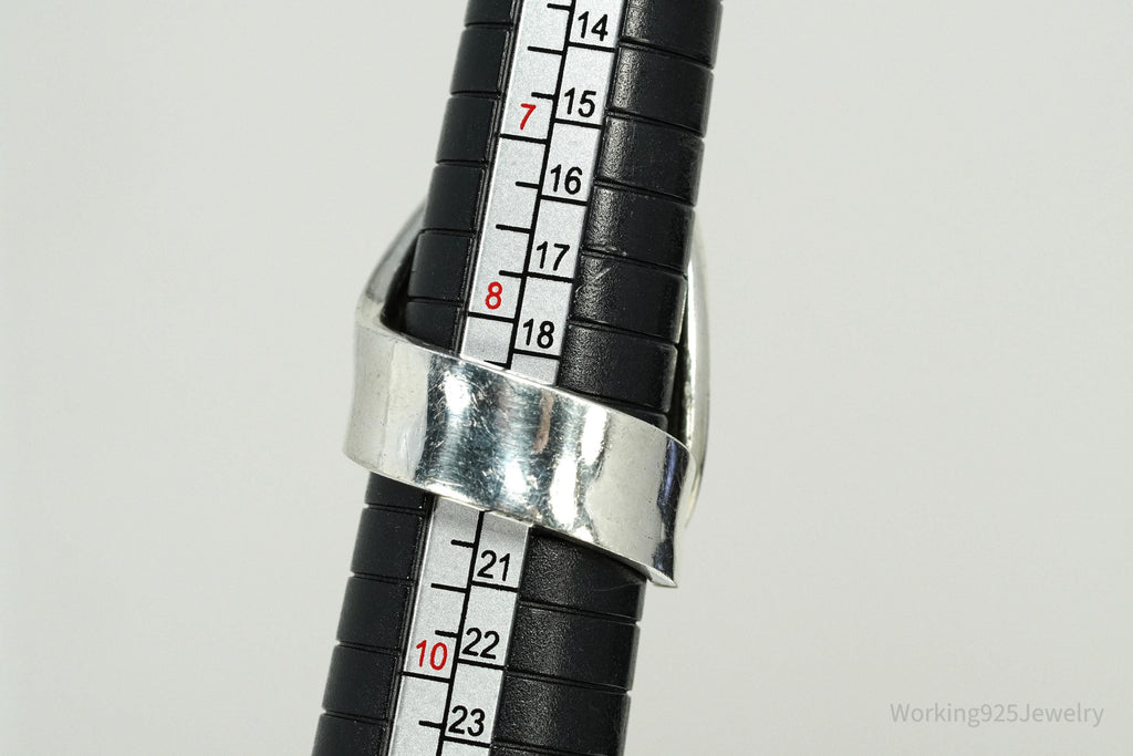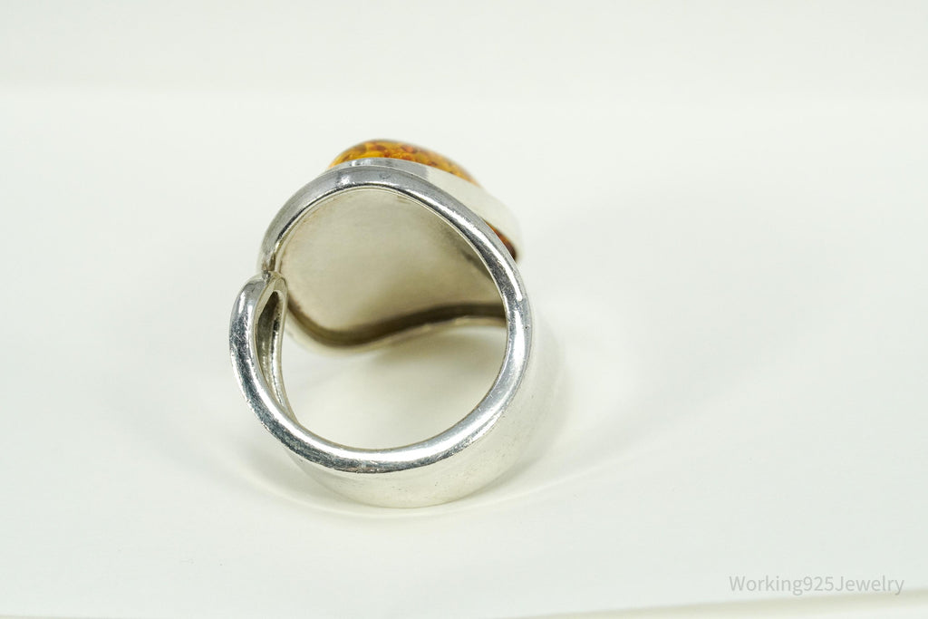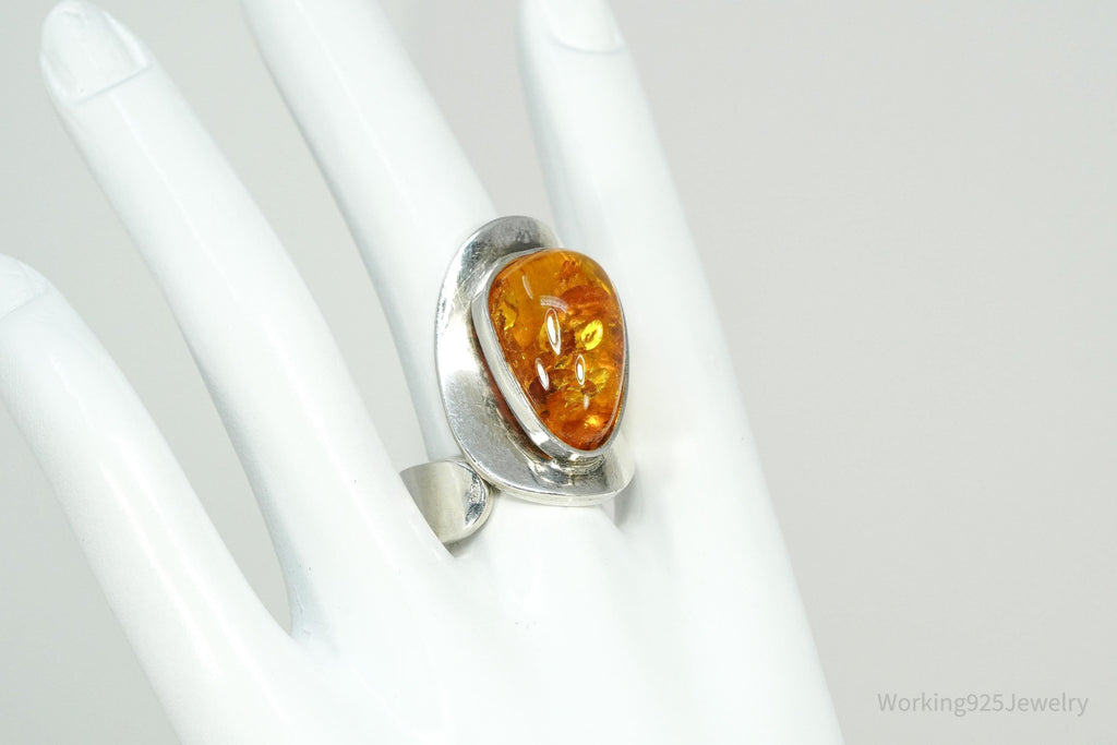 Vintage Large Amber Modernist Style Sterling Silver Ring - Size 9