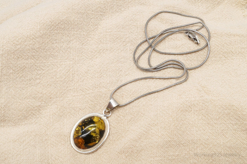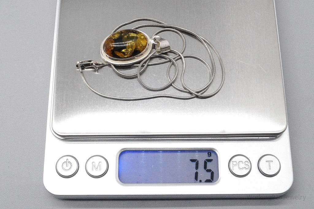 Vintage Large Amber Sterling Silver Chain Necklace 20"