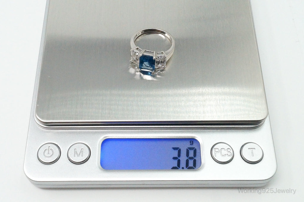 Vintage Large Blue Topaz Cubic Zirconia Sterling Silver Ring - Size 7
