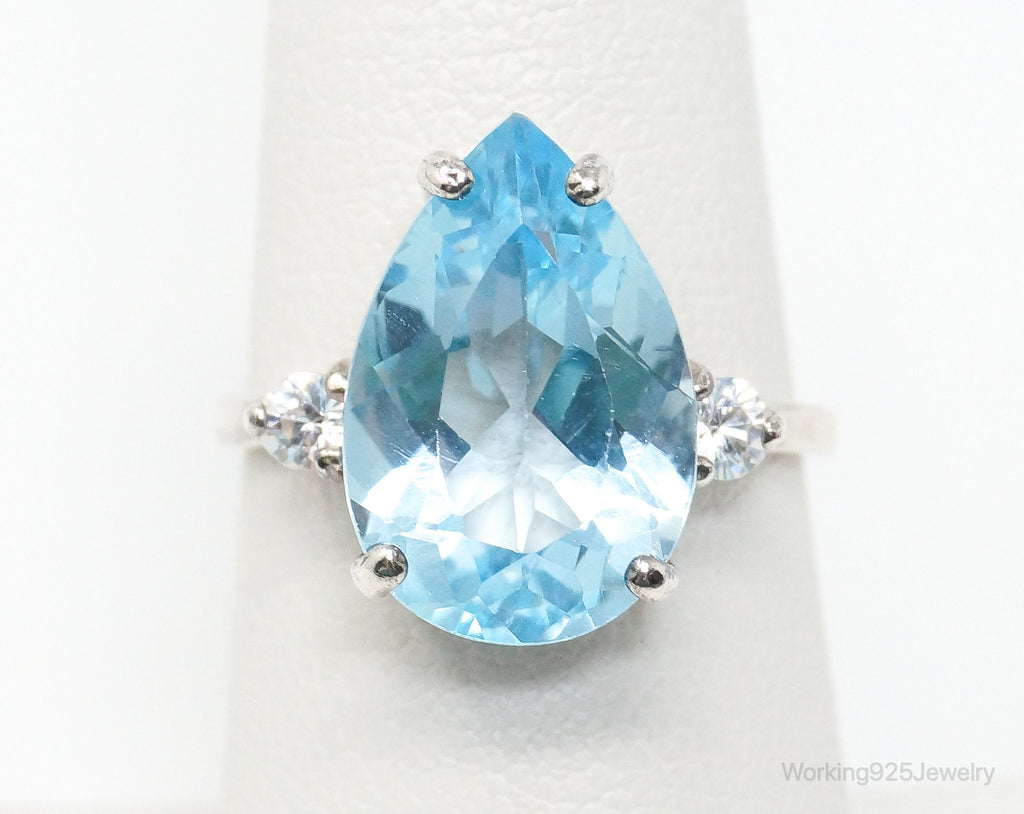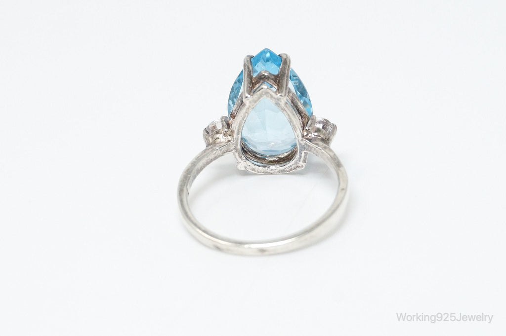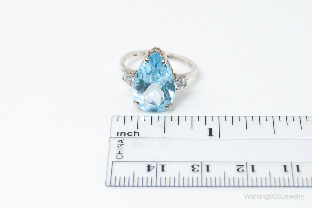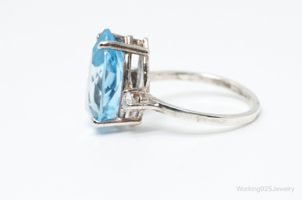 Vintage Large Blue Topaz Cubic Zirconia Sterling Silver Statement Ring Size 6.75