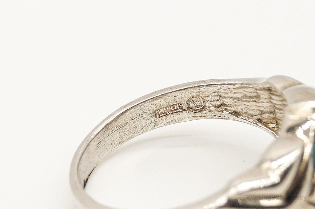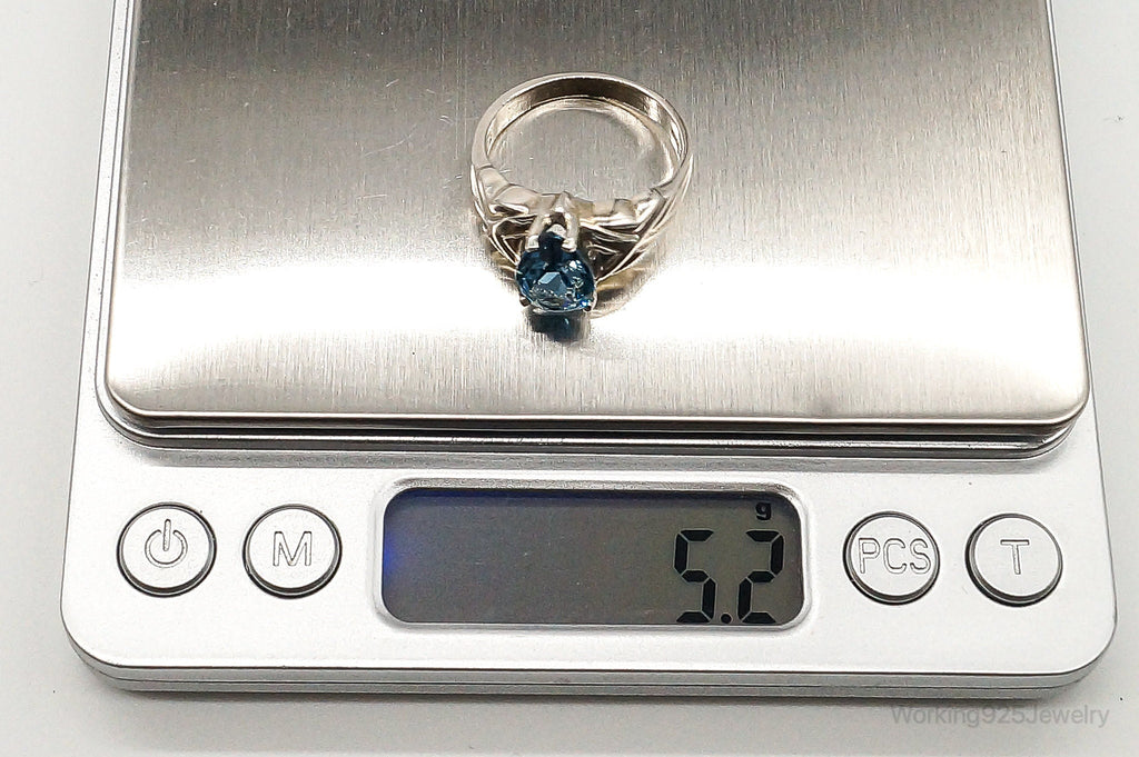 Vintage Large Blue Topaz Sterling Silver Ring - Size 10