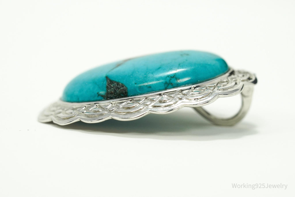 Vintage Large Blue Turquoise Sterling Silver Pendant