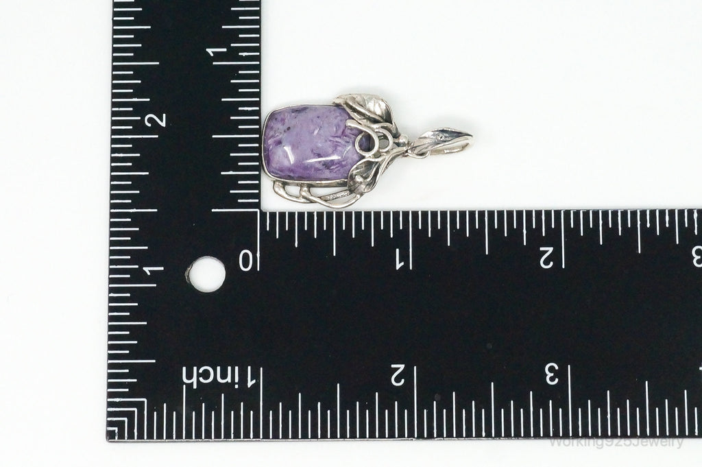 Vintage Large Charoite Sterling Silver Necklace Pendant