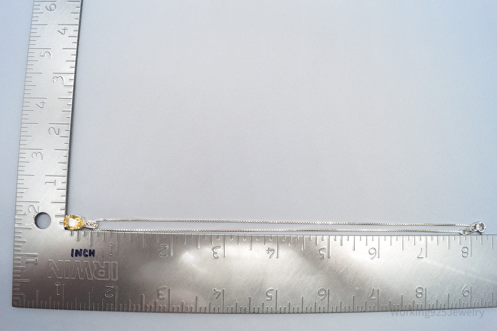 Vintage Large Citrine Sterling Silver Necklace 16"
