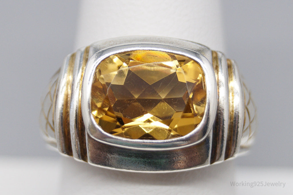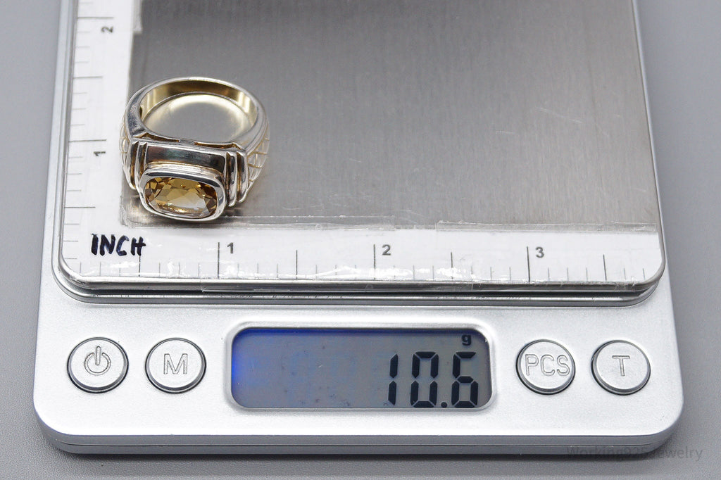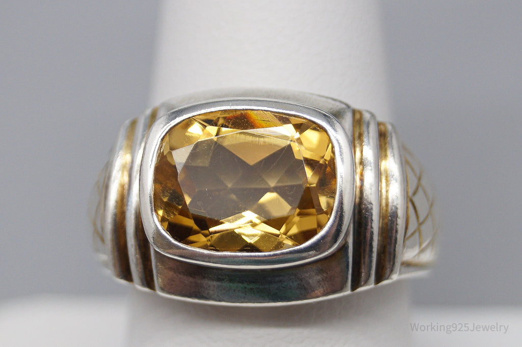 Vintage Large Citrine Sterling Silver Ring - Size 9