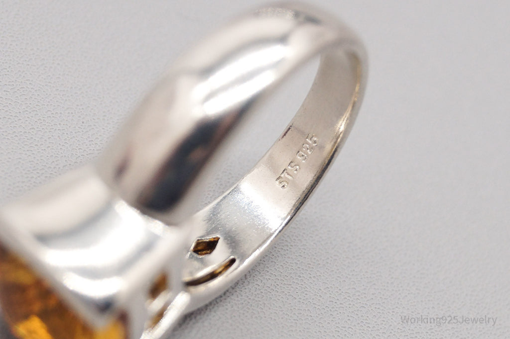 Vintage Large Citrine Sterling Silver Ring - Size 7.75