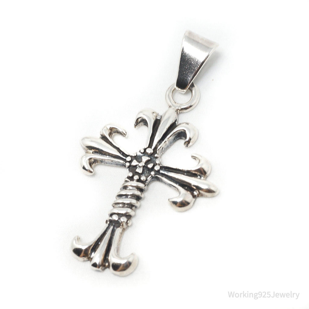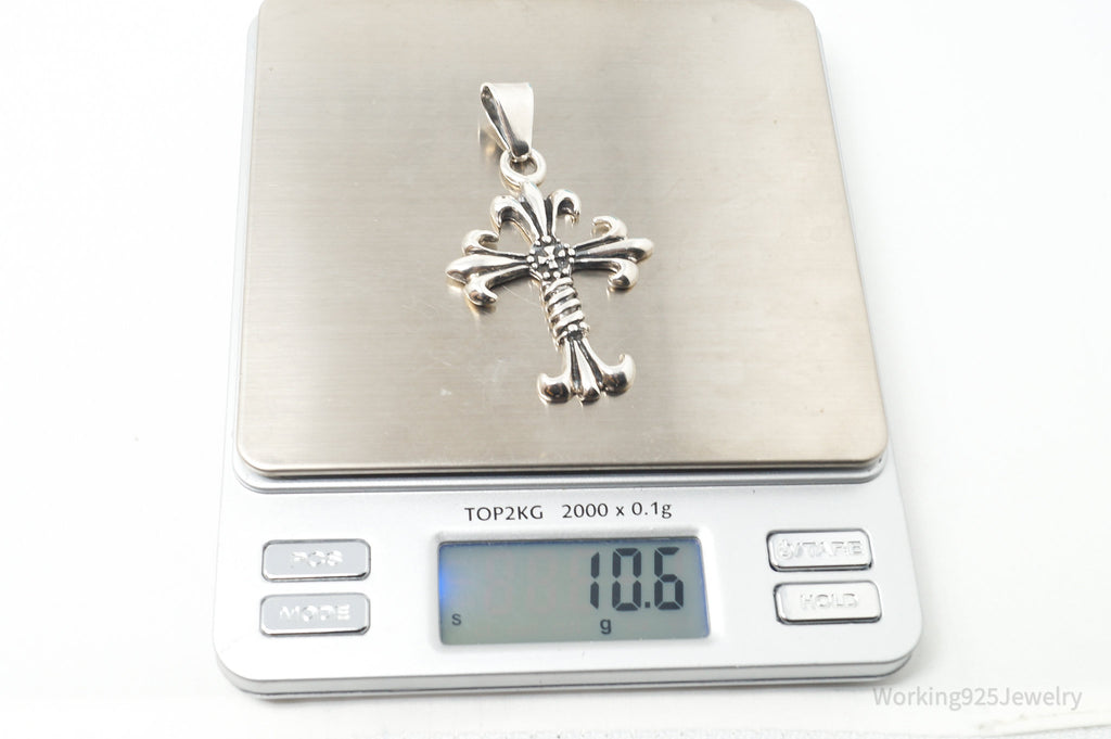 Vintage Large Cross Sterling Silver Necklace Pendant