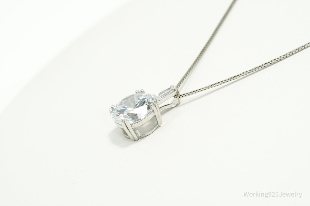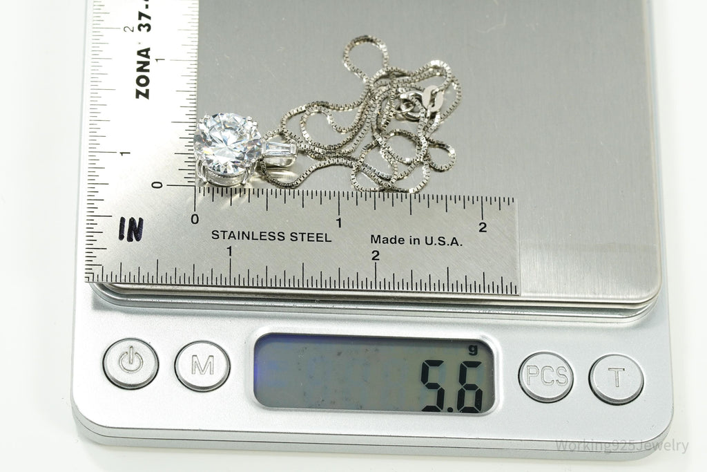 Vintage Large Cubic Zirconia Sterling Silver Necklace 18"