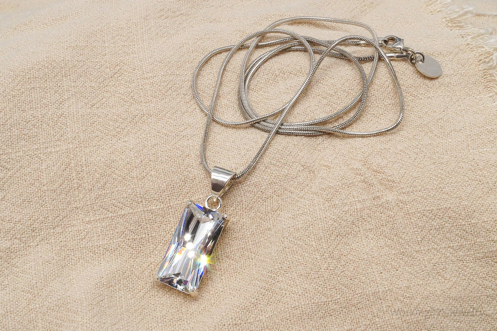 Vintage Large Cubic Zirconia Sterling Silver Necklace 24"