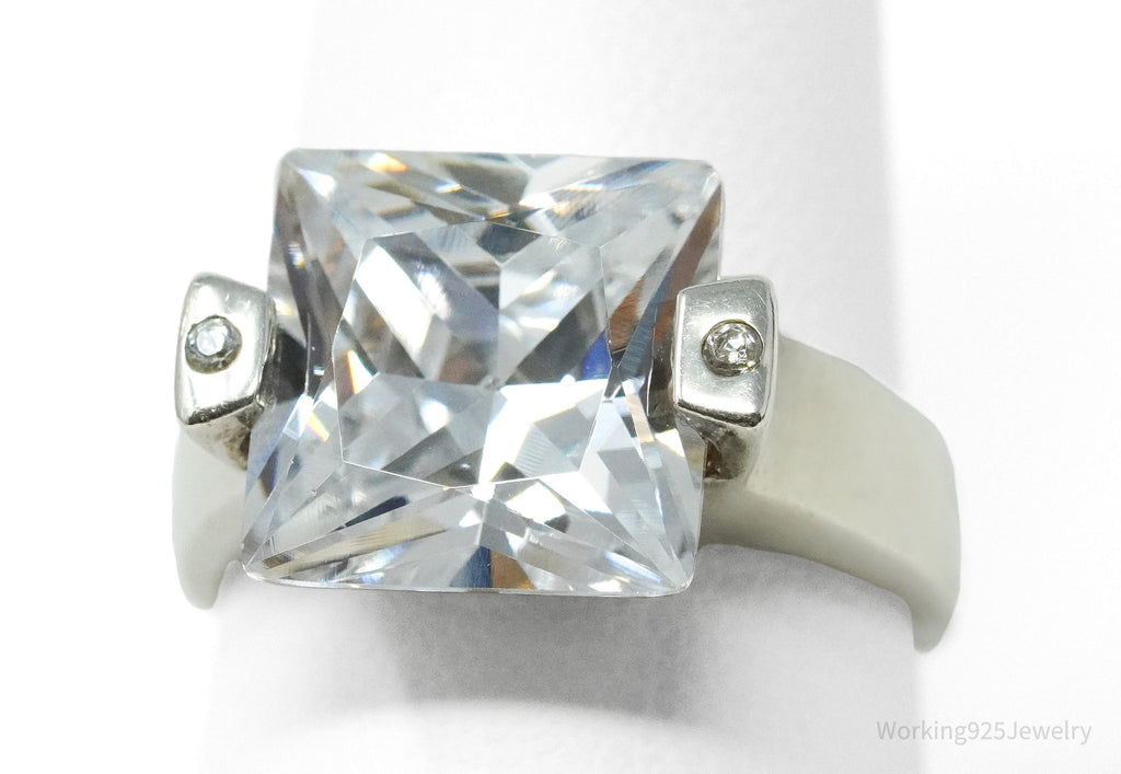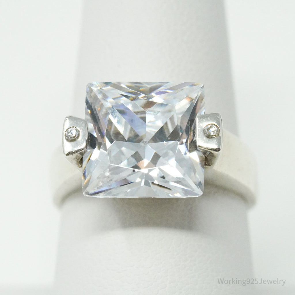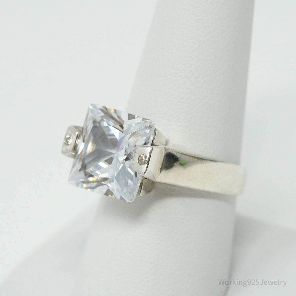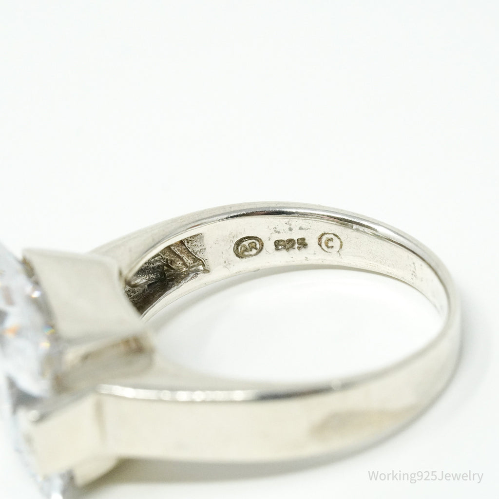 Vintage Large Cubic Zirconia Sterling Silver Ring Size 8.25