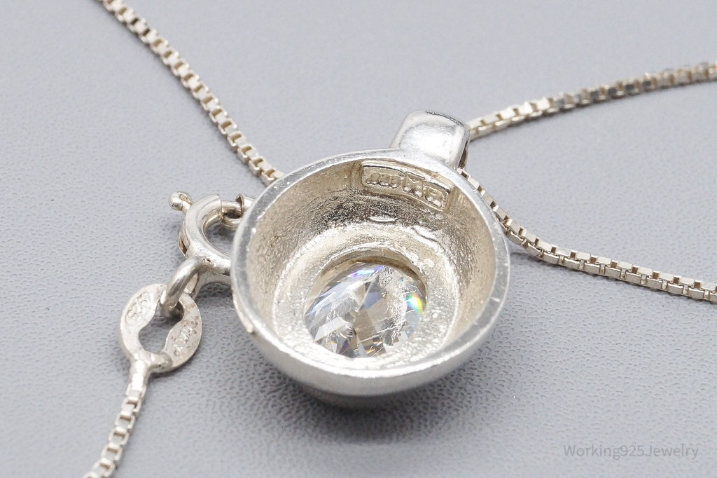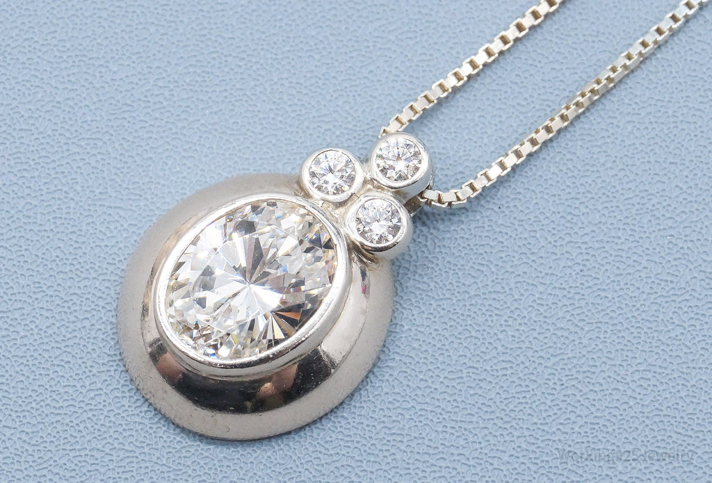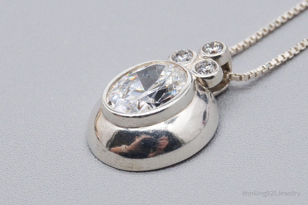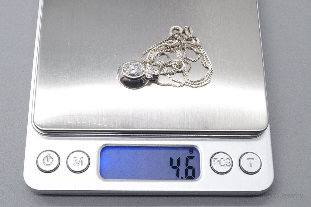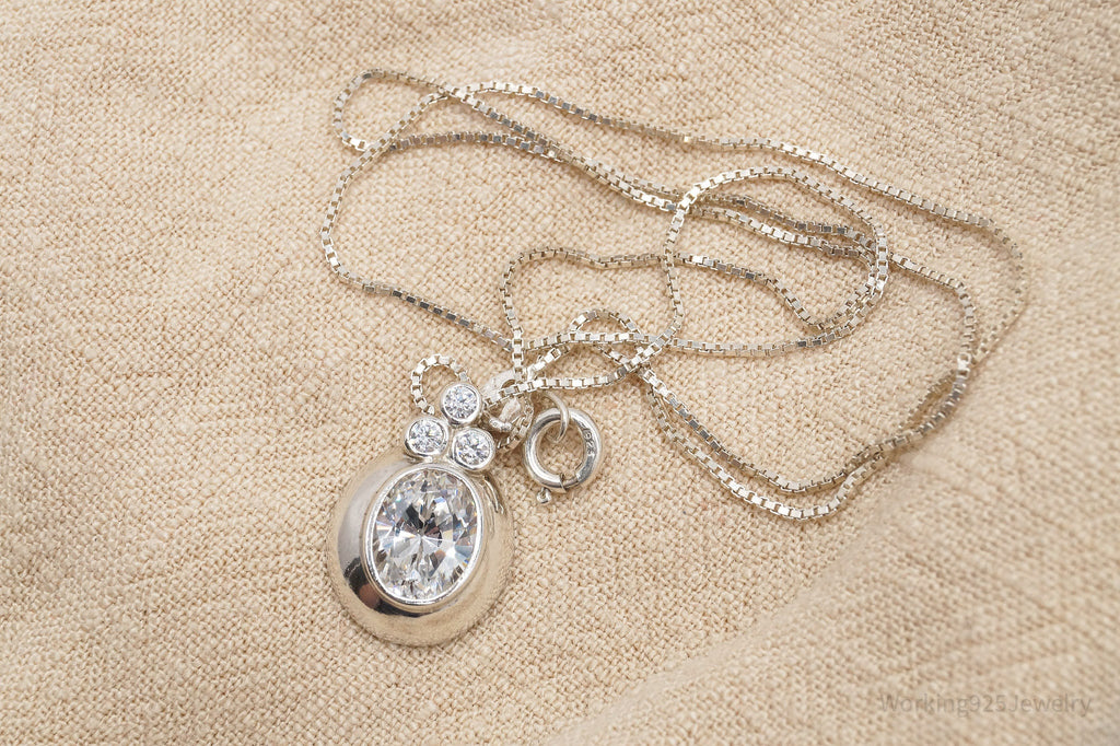 Vintage Large Diamonique Cubic Zirconia Sterling Silver Necklace 18"