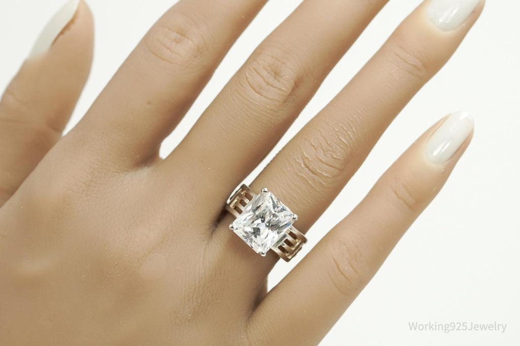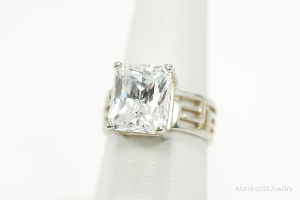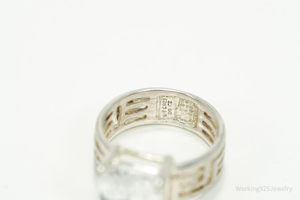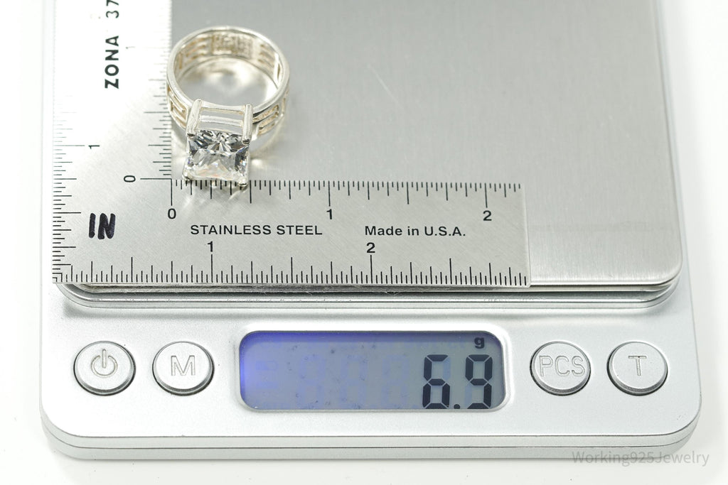 Vintage Large Diamonique Cubic Zirconia Sterling Silver Ring - Size 7.25