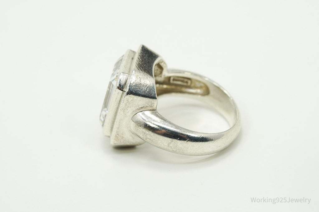 Vintage Large Diamonique DQCZ Sterling Silver Ring - Size 6