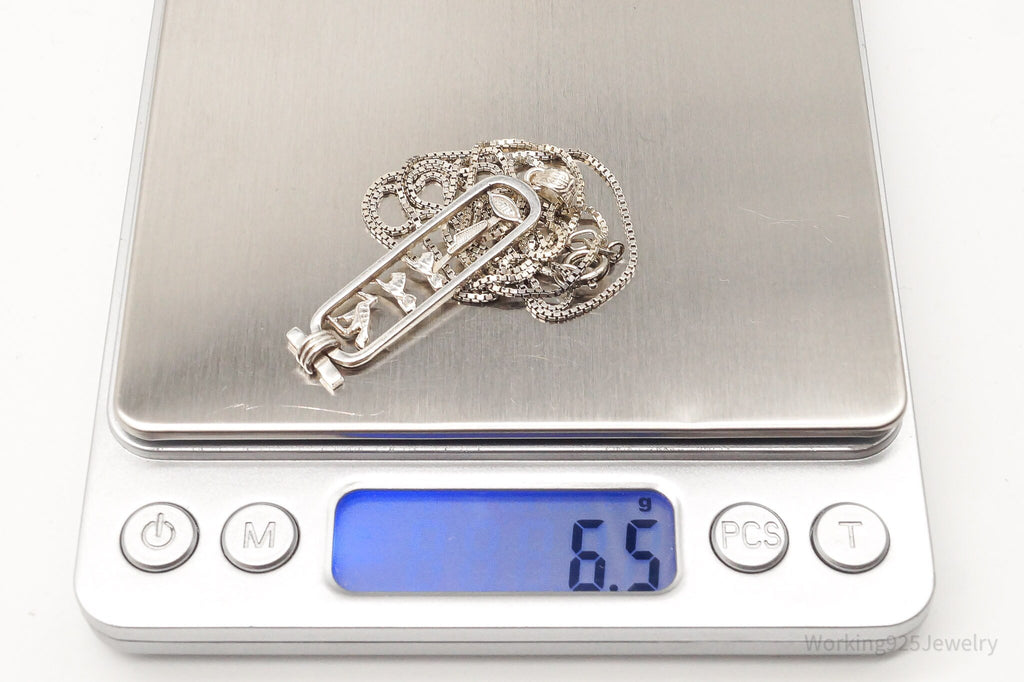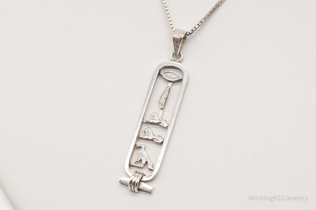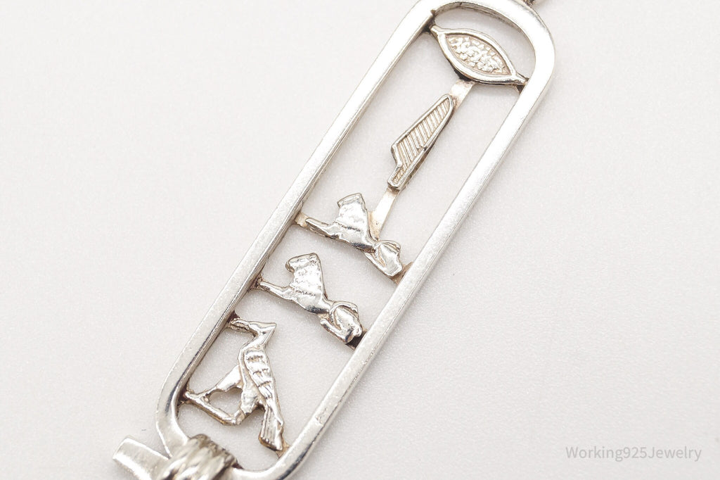 Vintage Large Egyptian Cartouche Sterling Silver Necklace