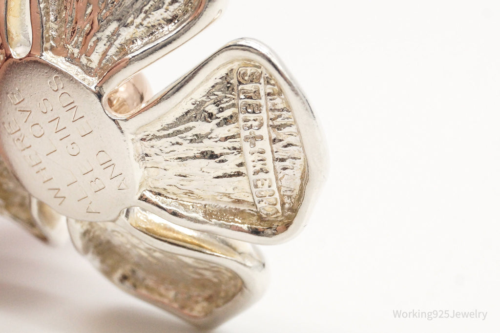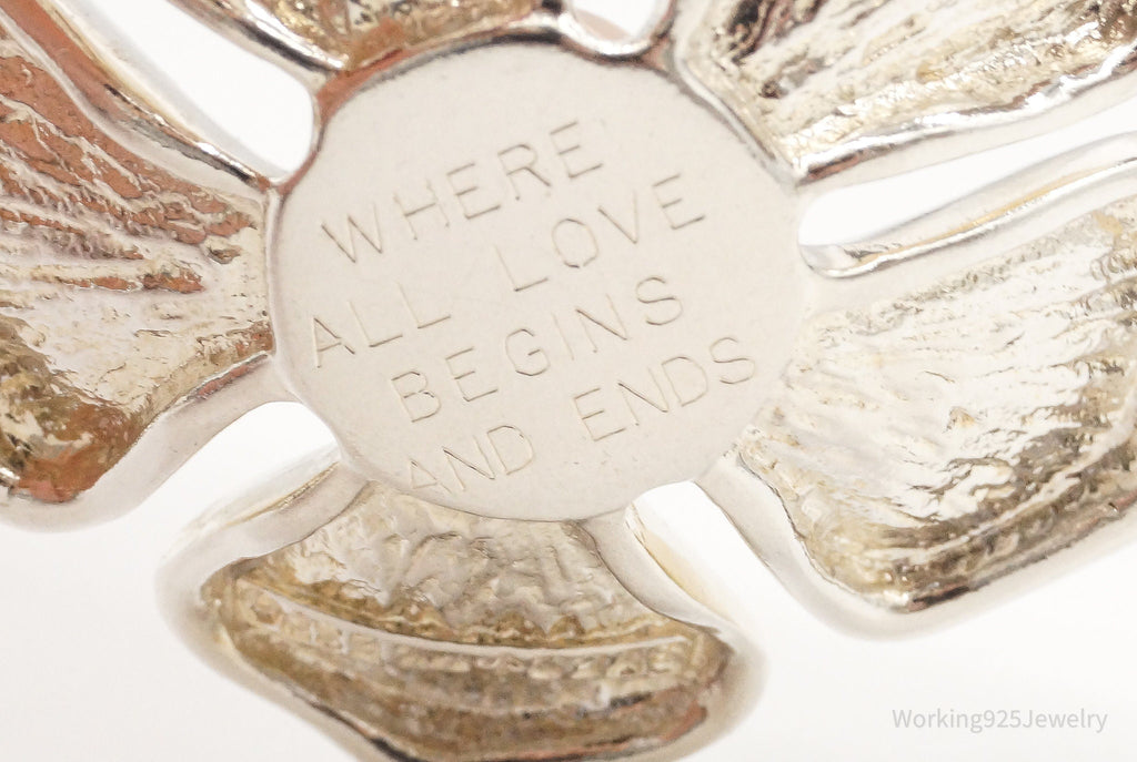 Vintage Large Espo 14K Gold Sterling Silver Quote Flower Pendant