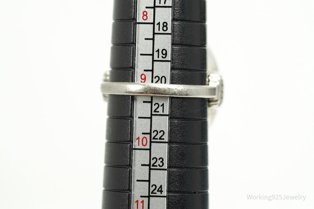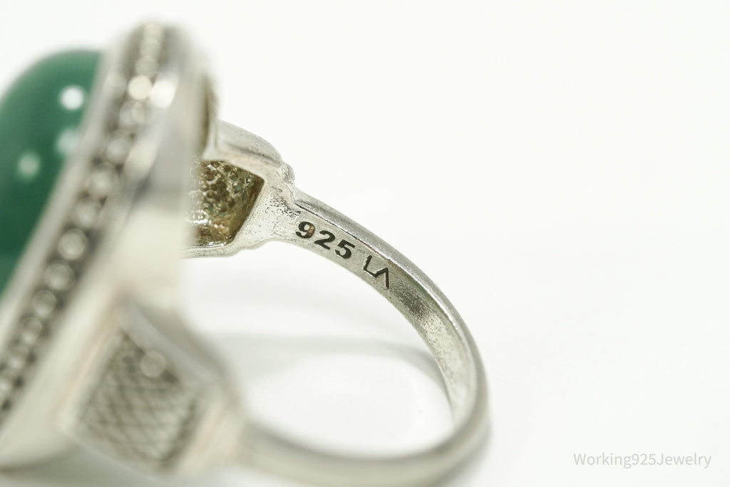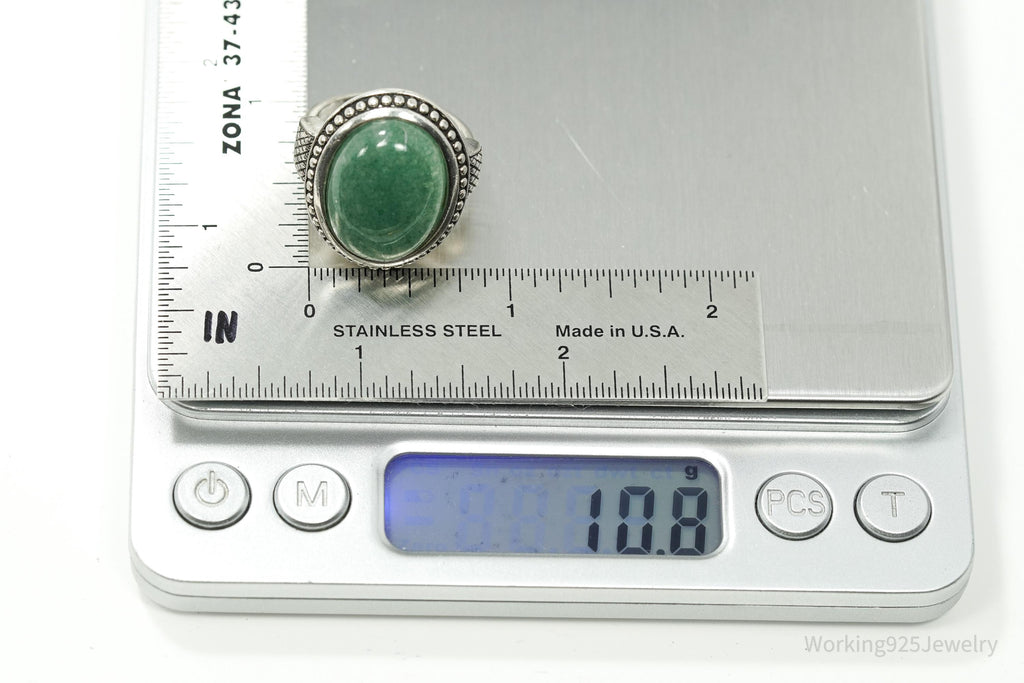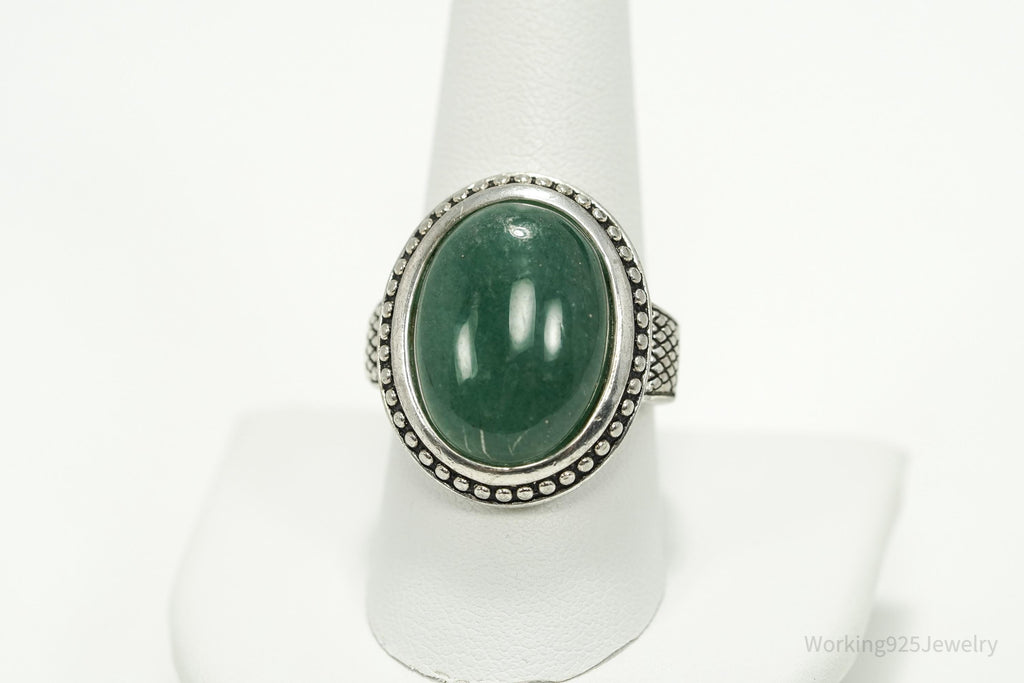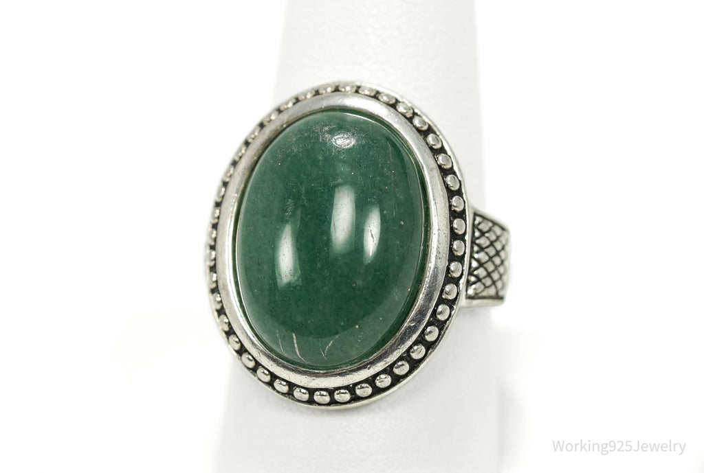 Vintage Large Green Aventurine Sterling Silver Ring - Size 9