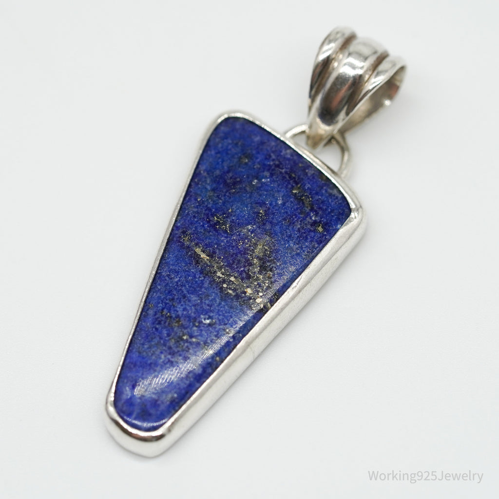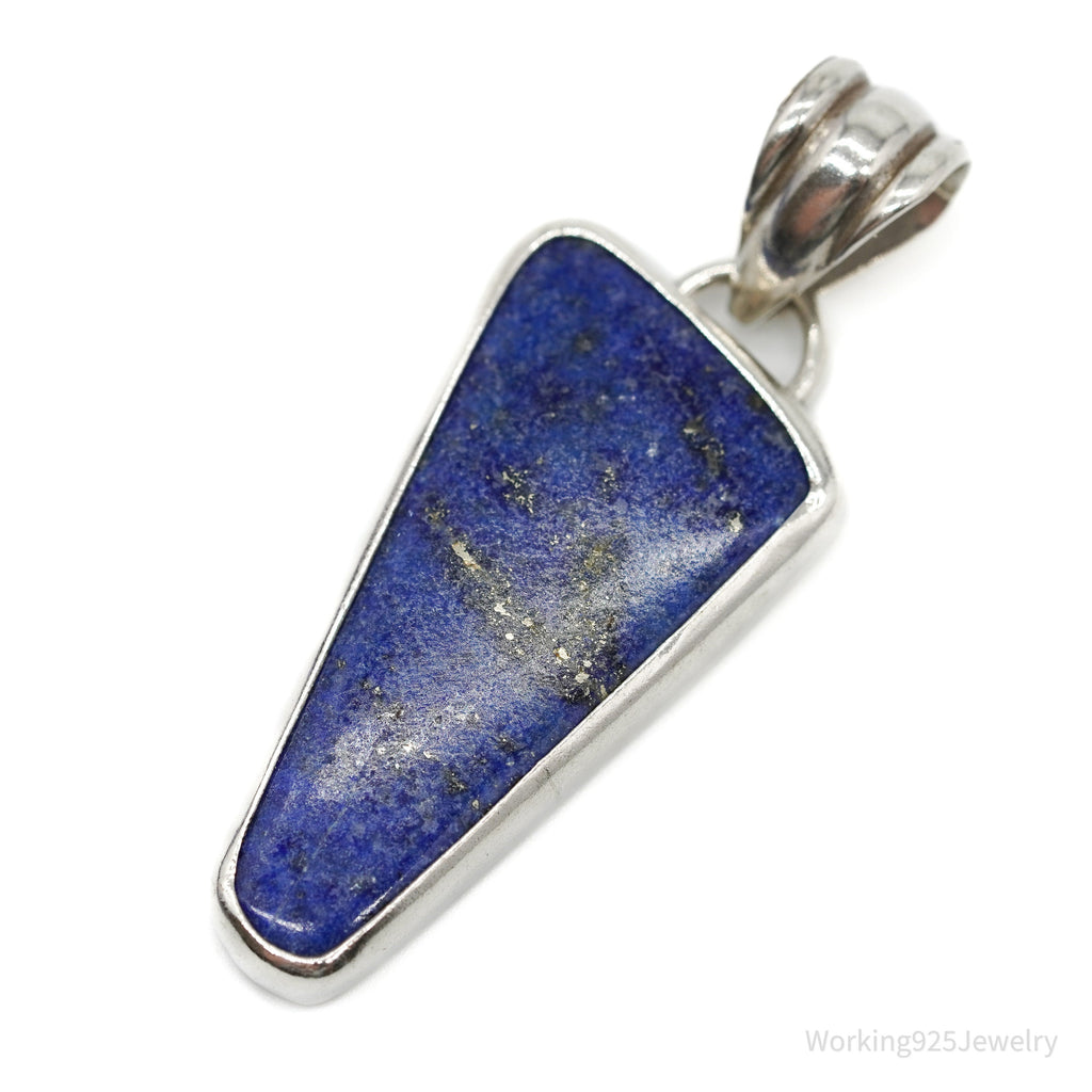 Vintage Large Lapis Lazuli Sterling Silver Necklace Pendant