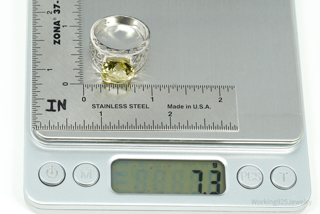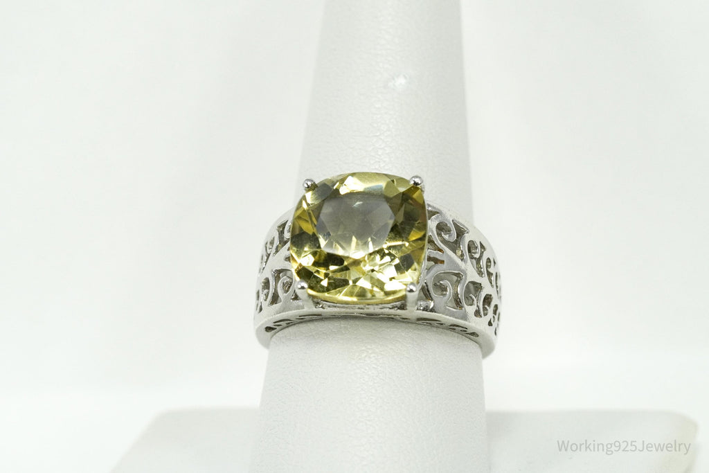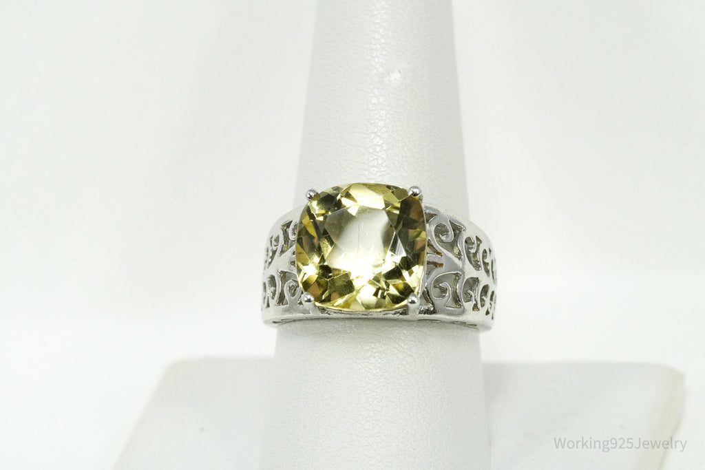 Vintage Large Lemon Citrine Sterling Silver Ring - Size 9