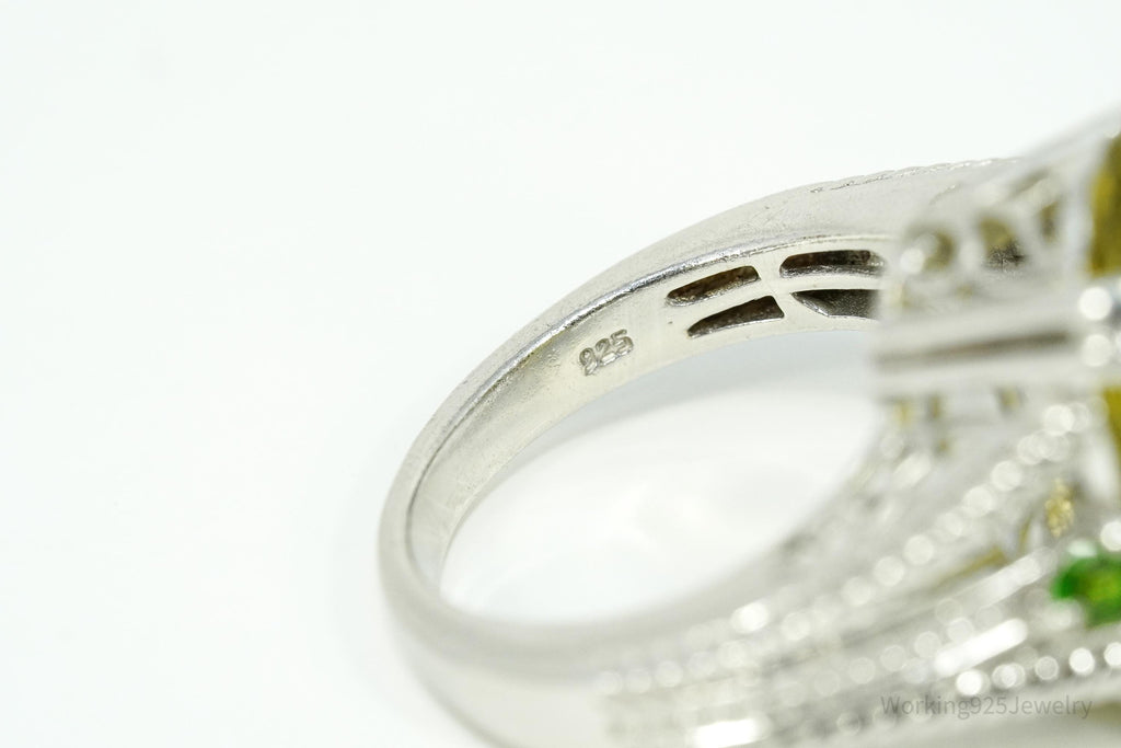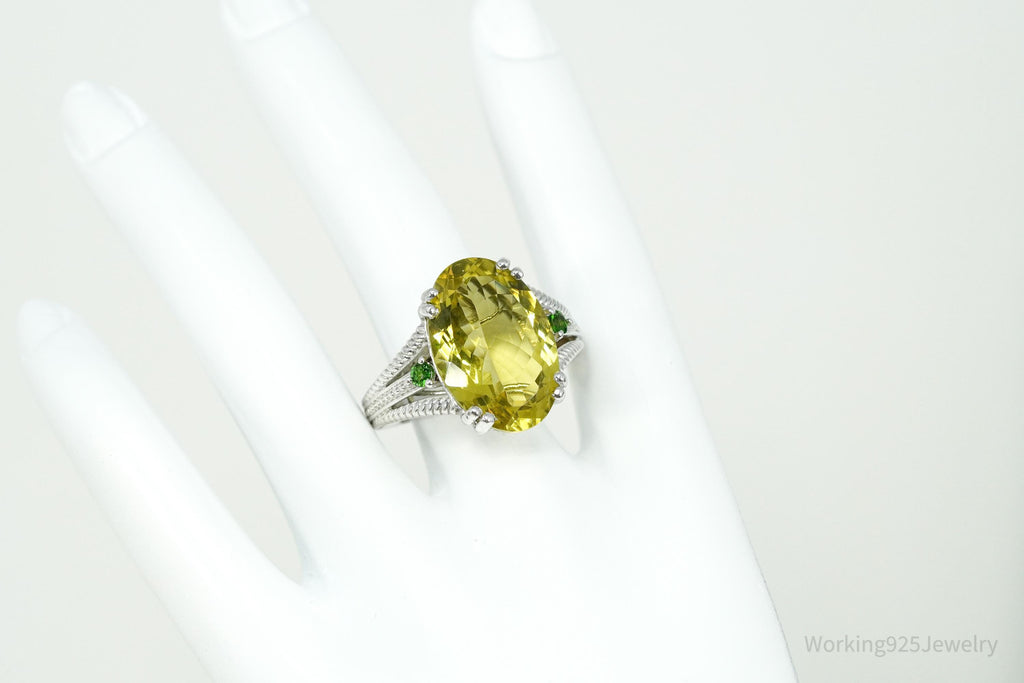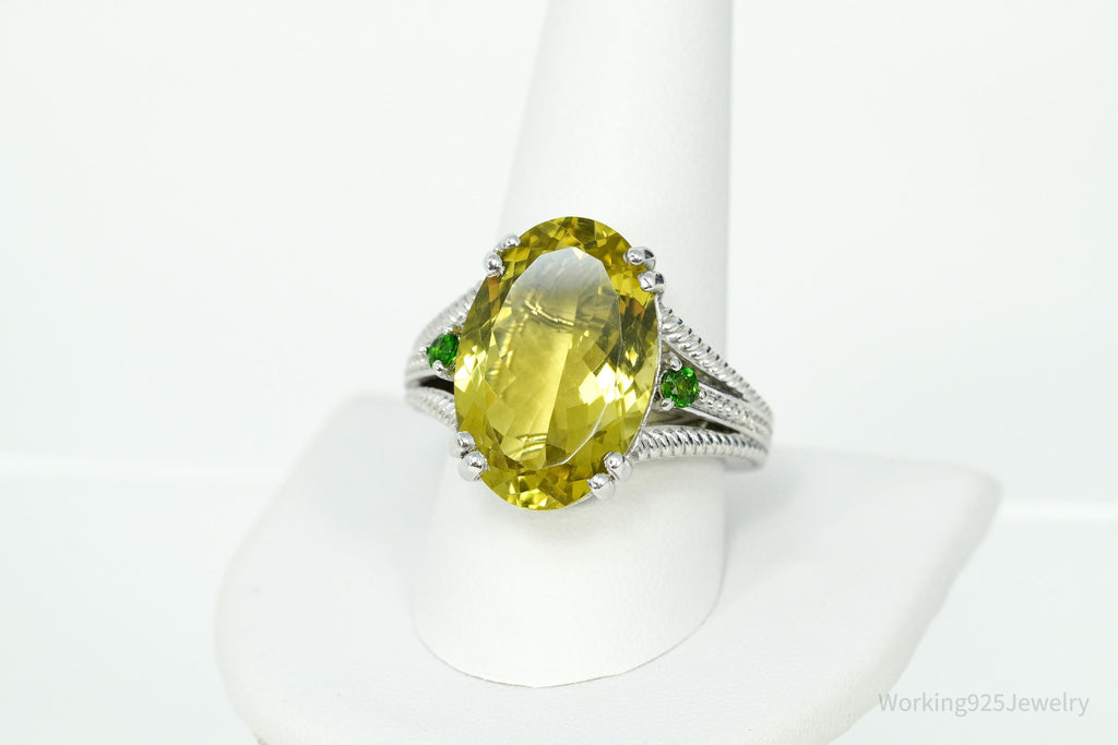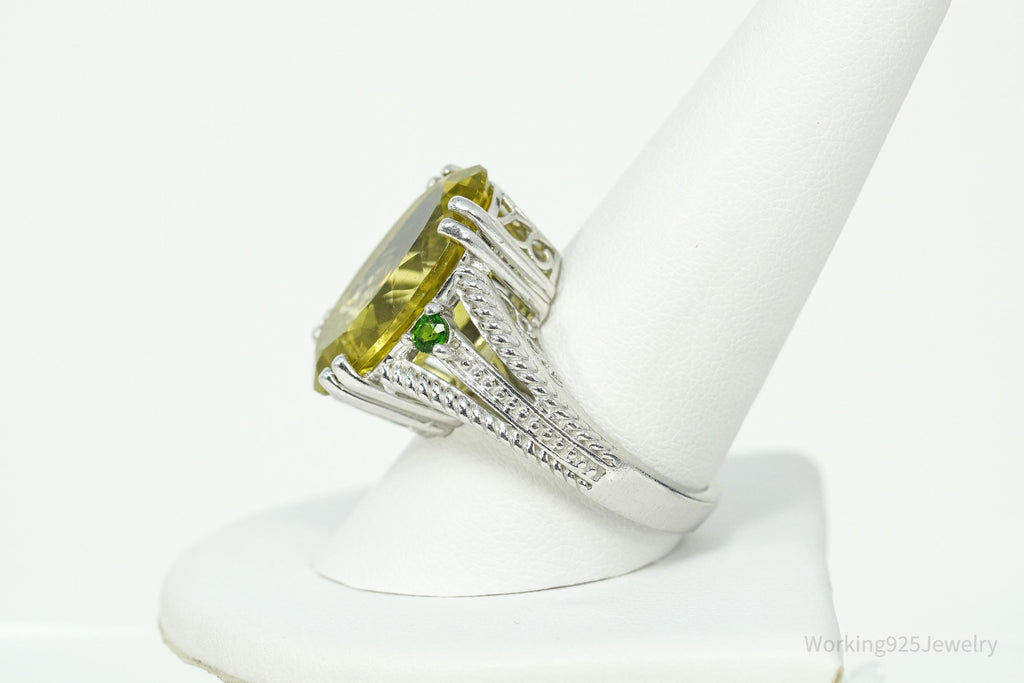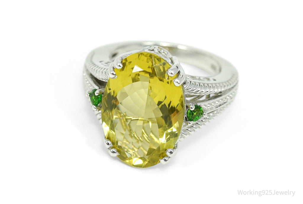 Vintage Large Lemon Quartz & Green Chrome Diopside Sterling Silver Ring Size 10