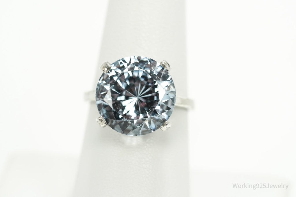 Vintage Large Light Blue Spinel Sterling Silver Rhodium Plated Ring - Size 7.25