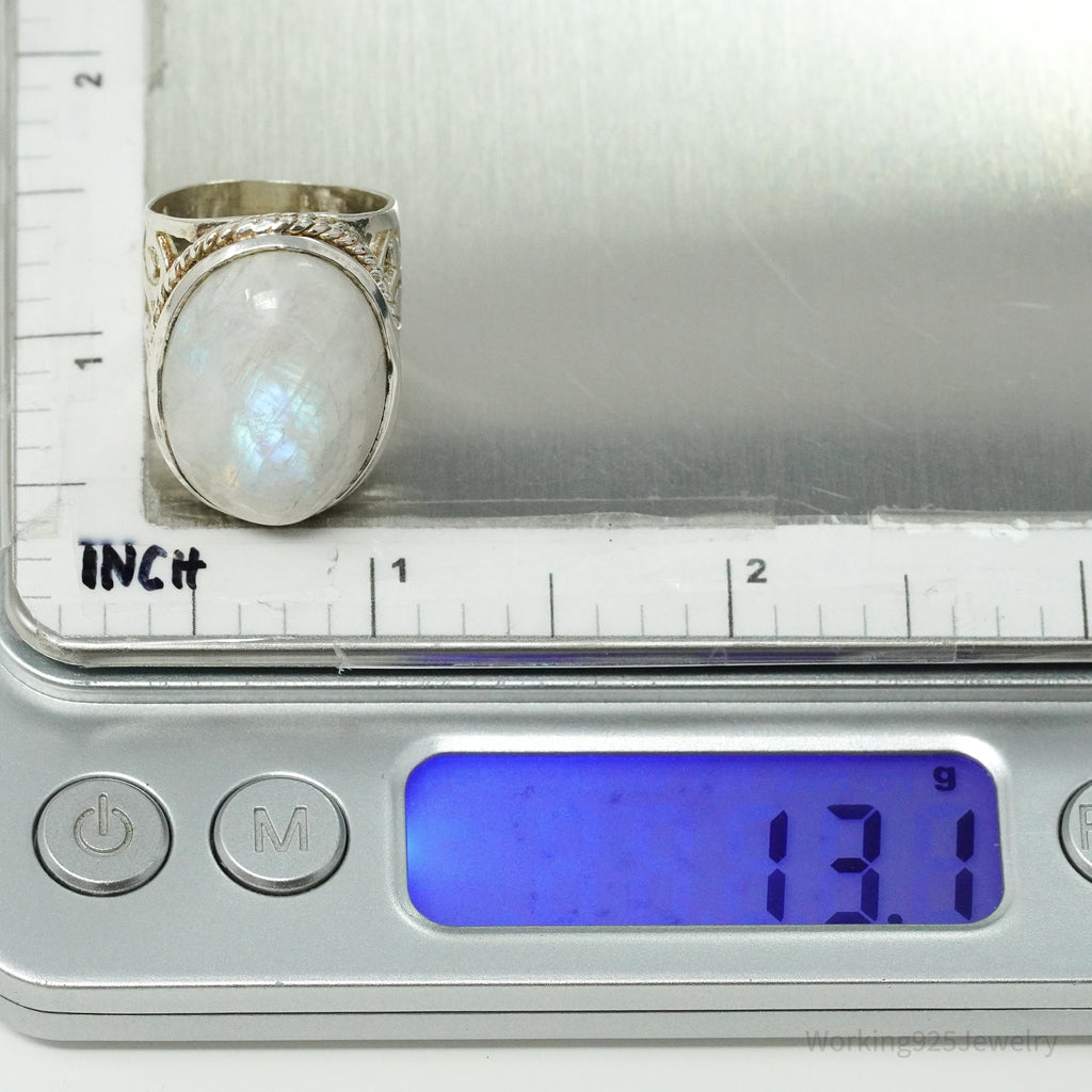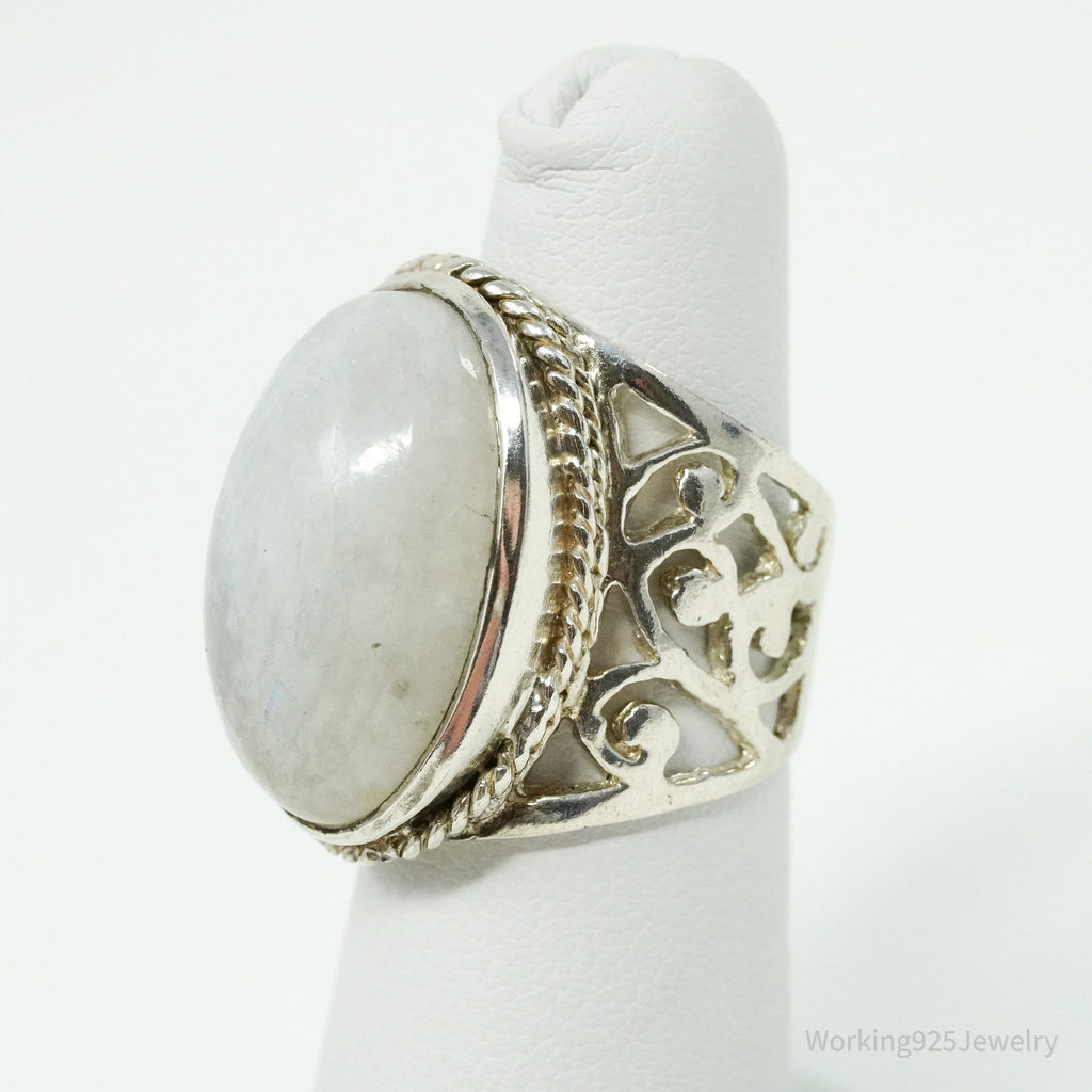 Vintage Large Moonstone Sterling Silver Ring - Size 5.75