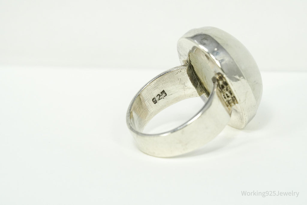 Vintage Large Moonstone Sterling Silver Ring - Size 7.75