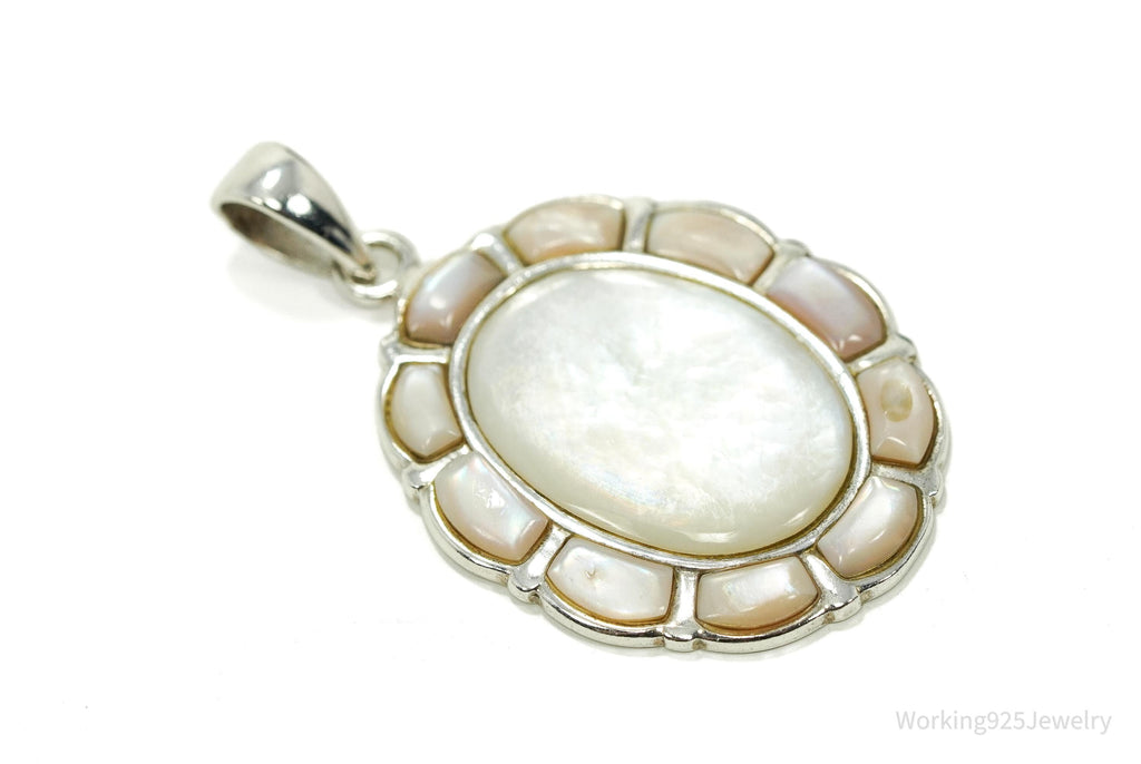 Vintage Large Mother Of Pearl Inlay Sterling Silver Pendant