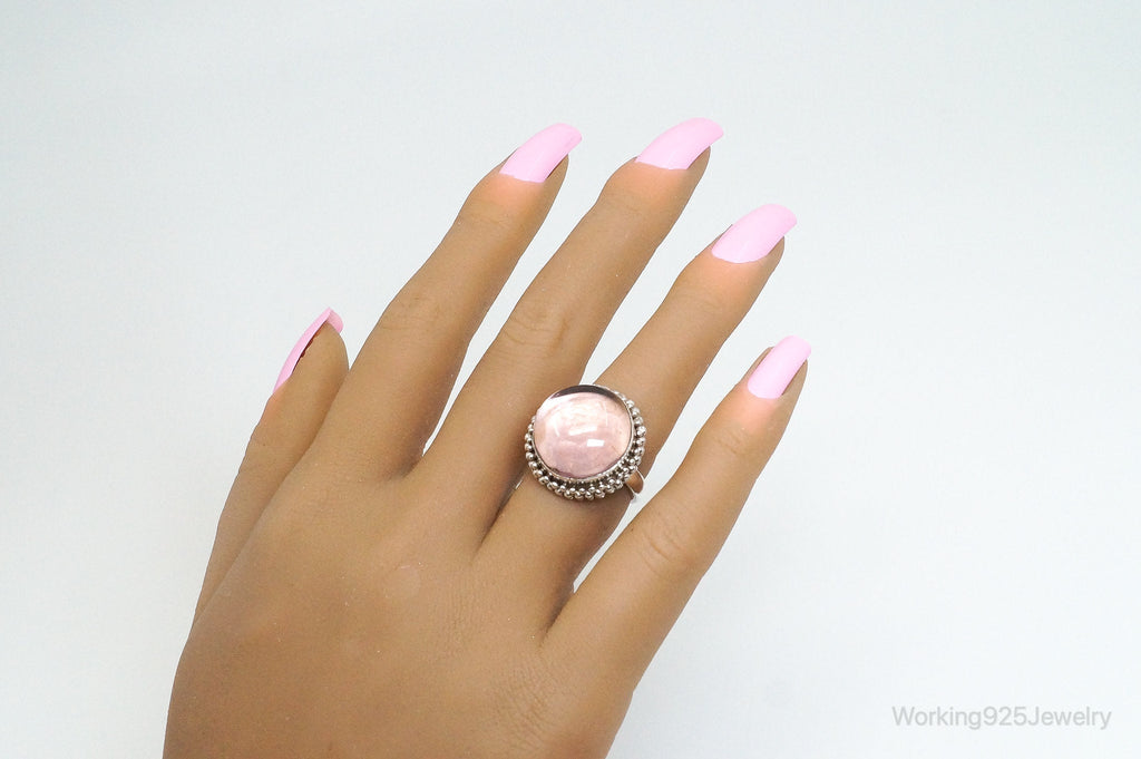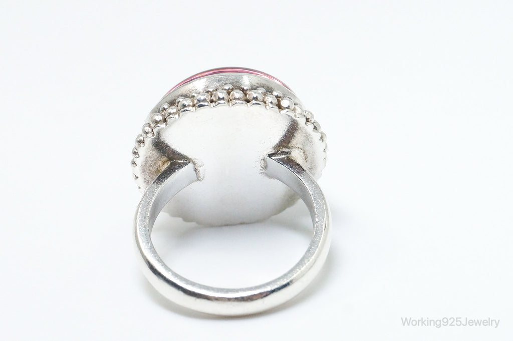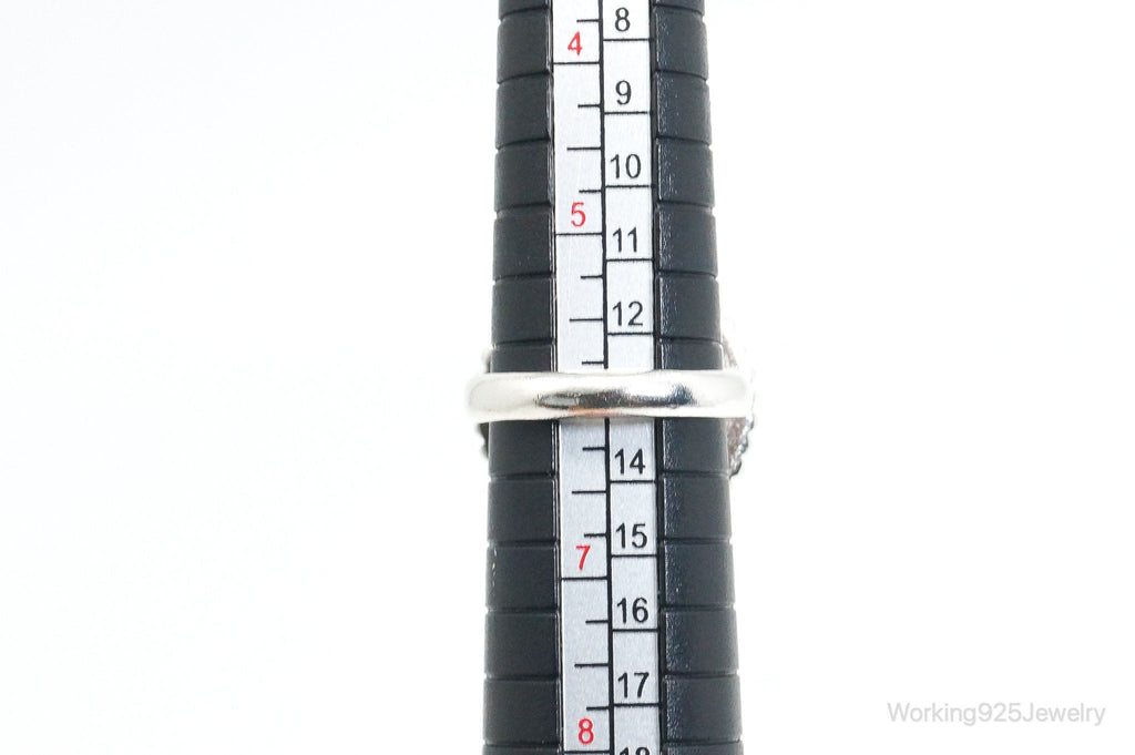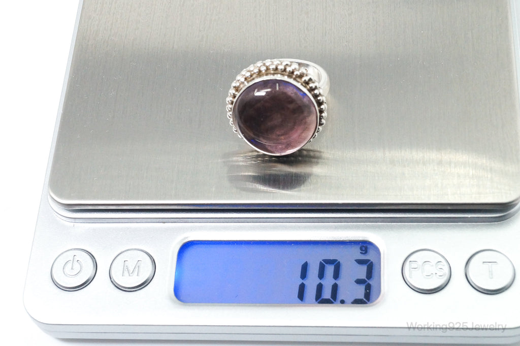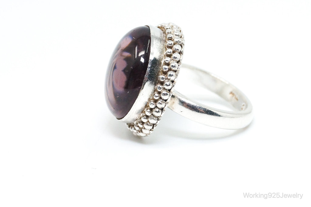 Vintage Large Purple Glass Modern Sterling Silver Ring - SZ 6