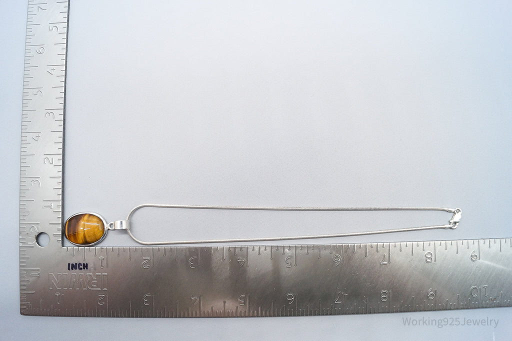 Vintage Large Tigers Eye Sterling Silver Necklace 16"