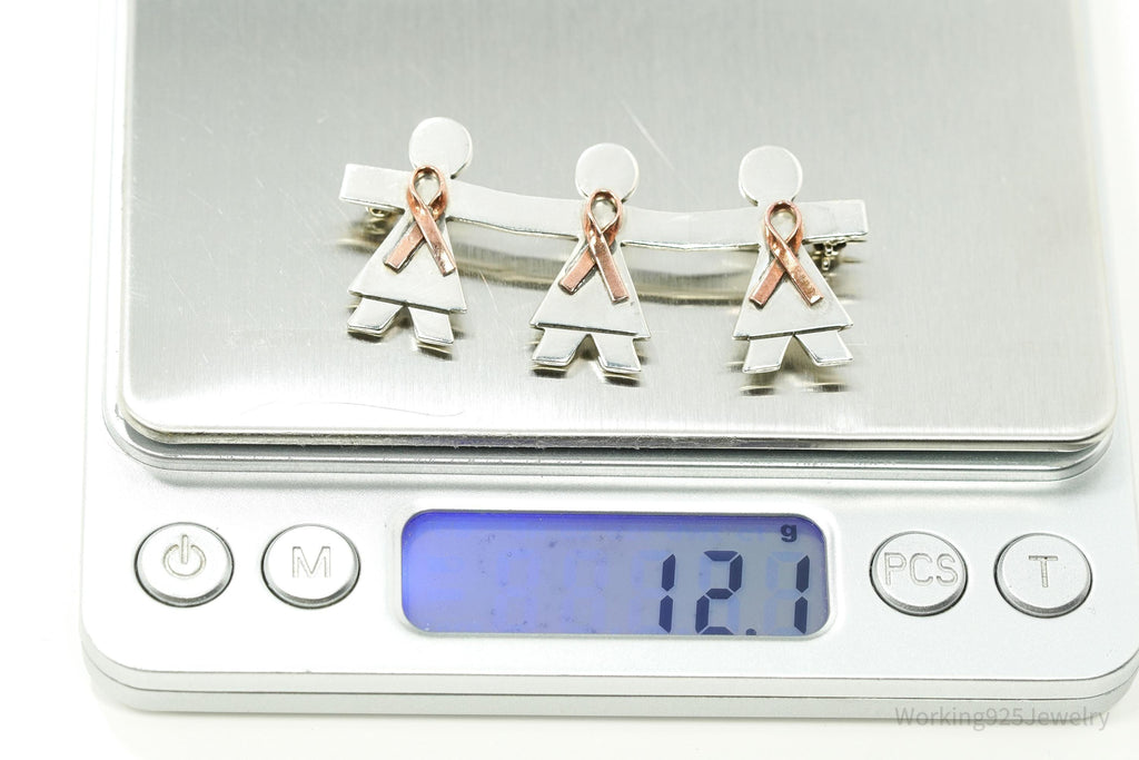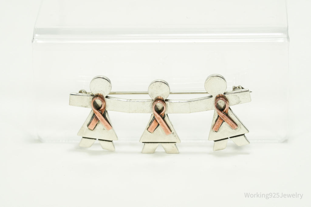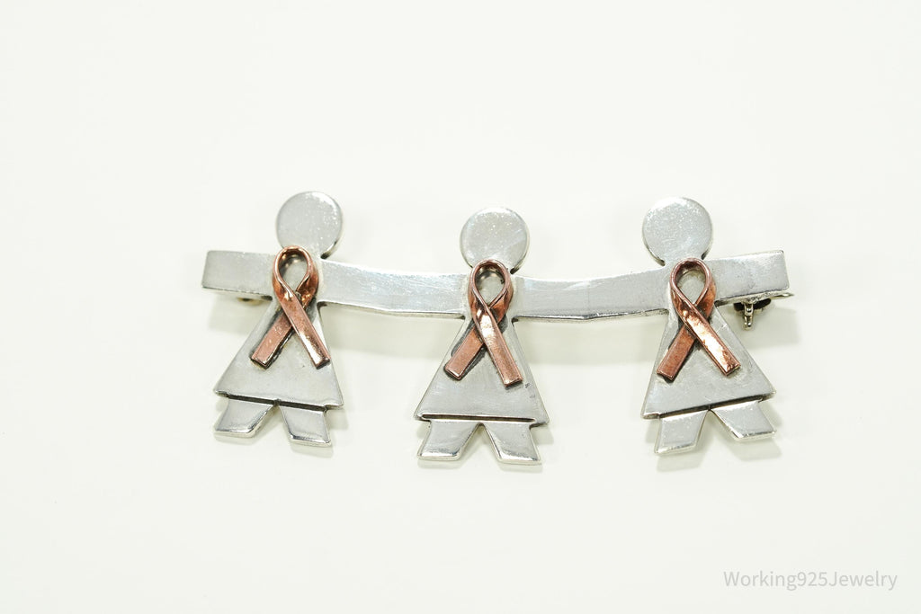 Vintage Large Women's Breast Cancer Awareness Sterling Silver Pin