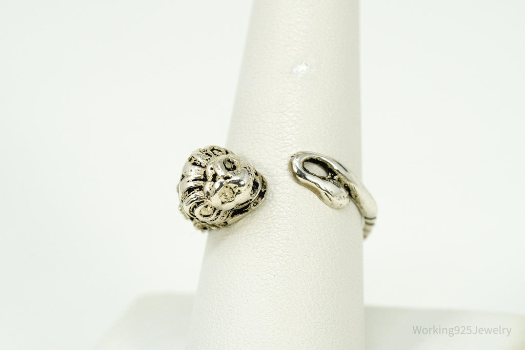 Vintage Lion's Head King Of The Jungle Sterling Silver Wrap Ring Size 8.75