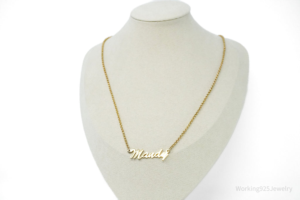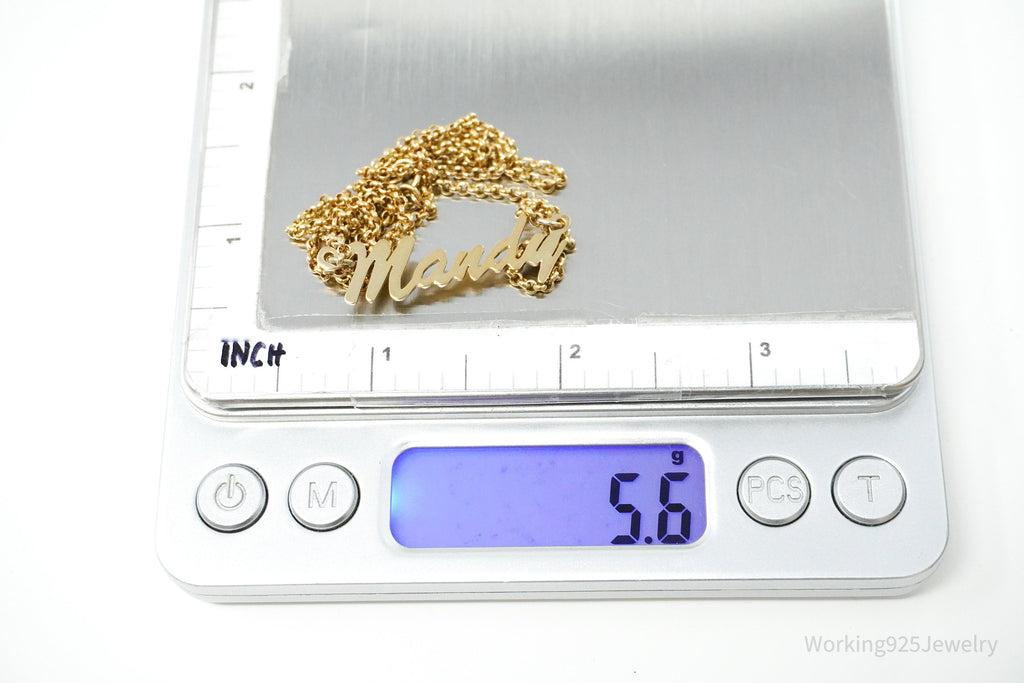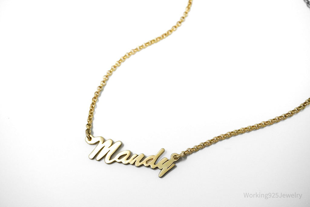 Vintage " Mandy " Name Gold Vermeil Sterling Silver Necklace 18"