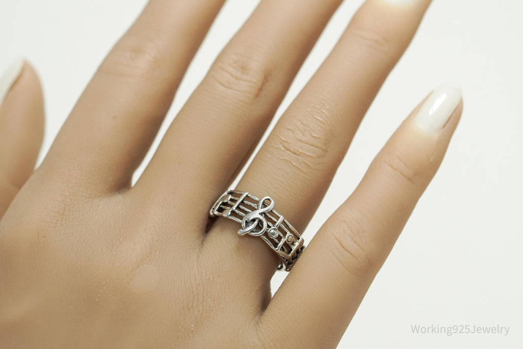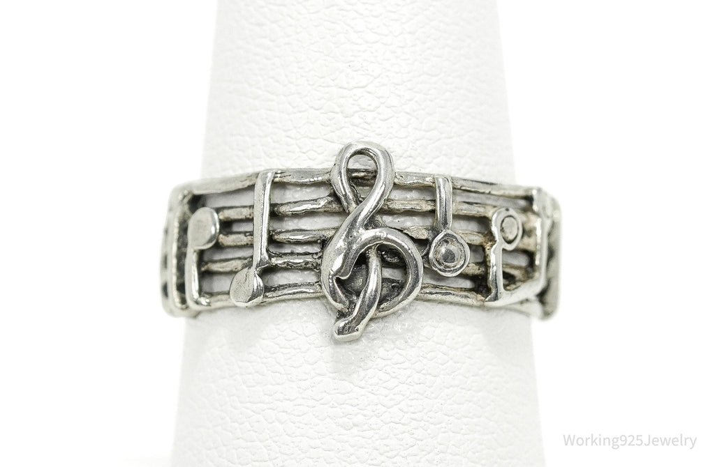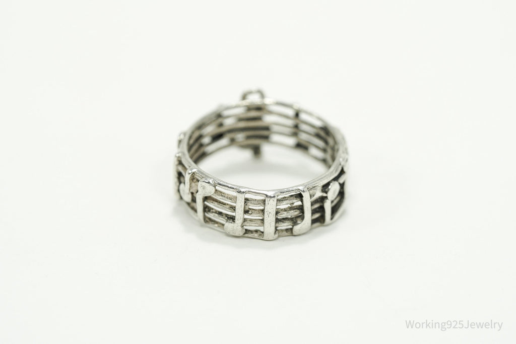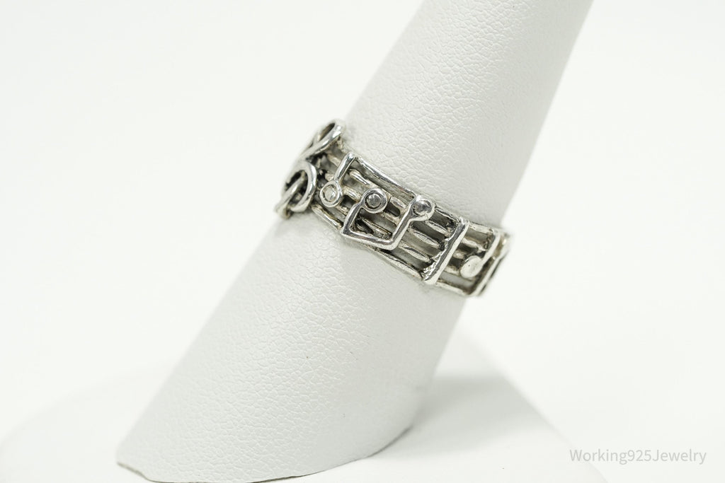 Vintage Melody Music Note Sterling Silver Band Ring SZ 7.75