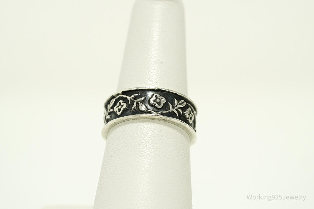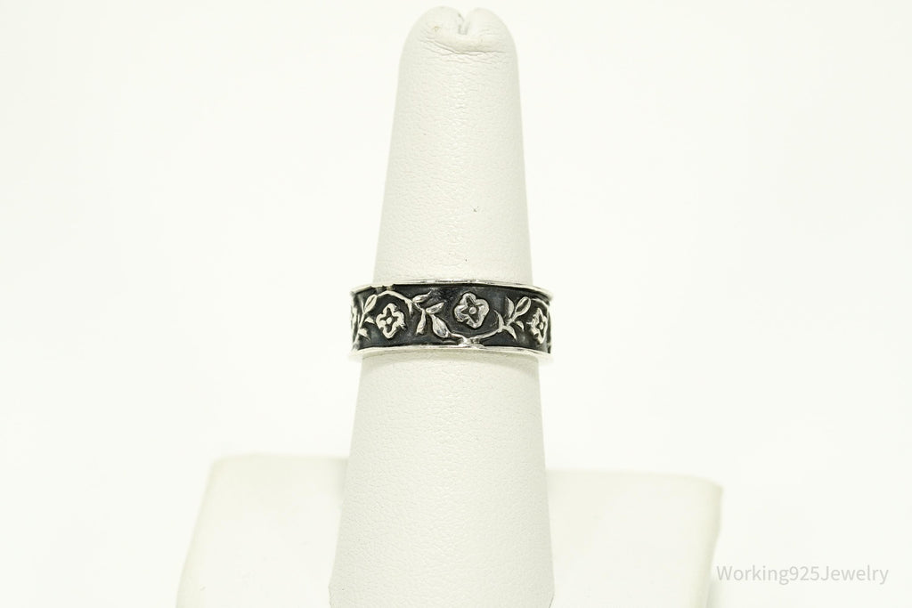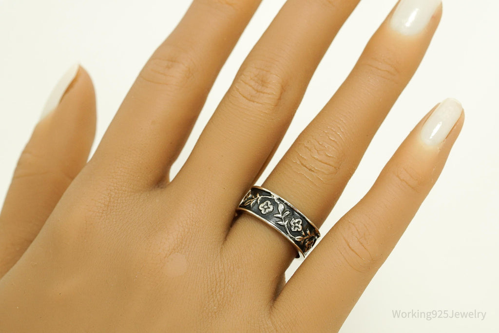 Vintage Mexican Flower Vine Sterling Silver Ring - Size 7.5