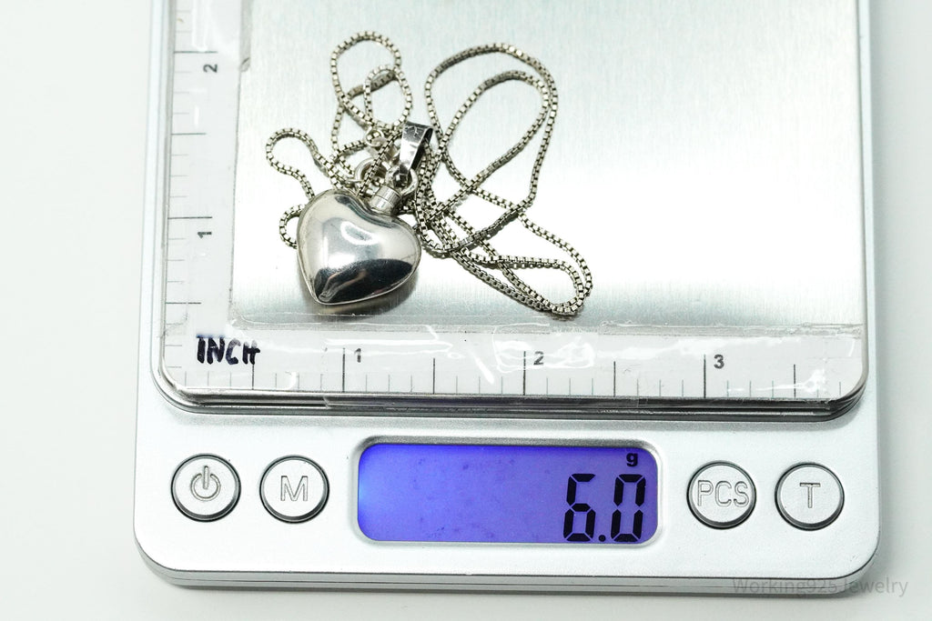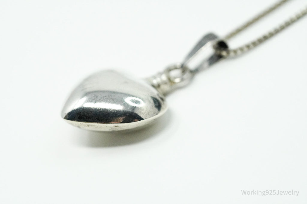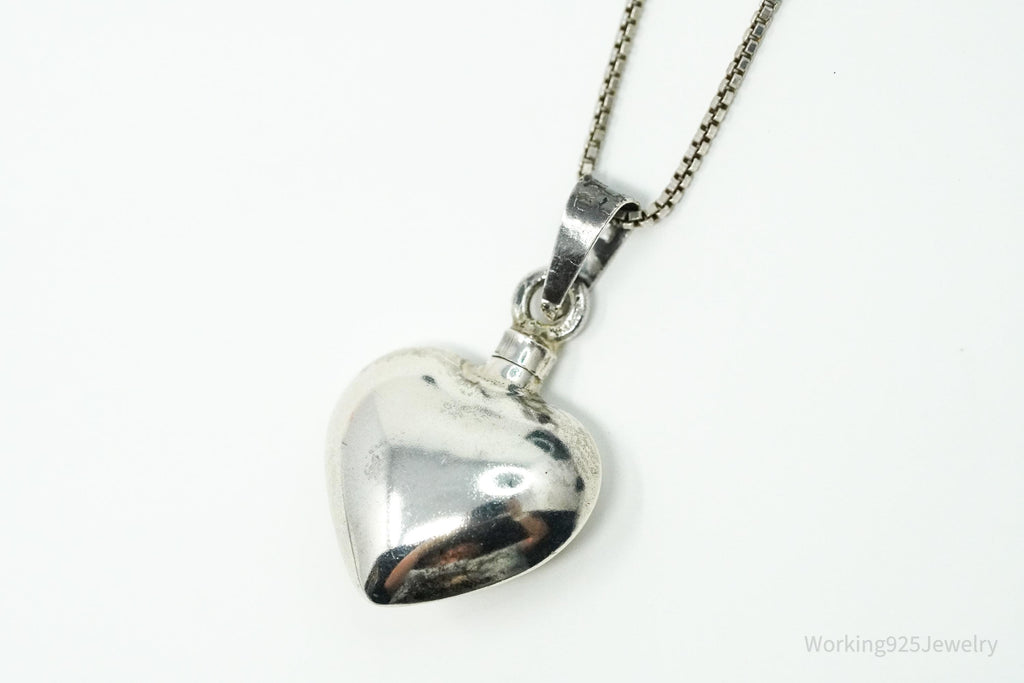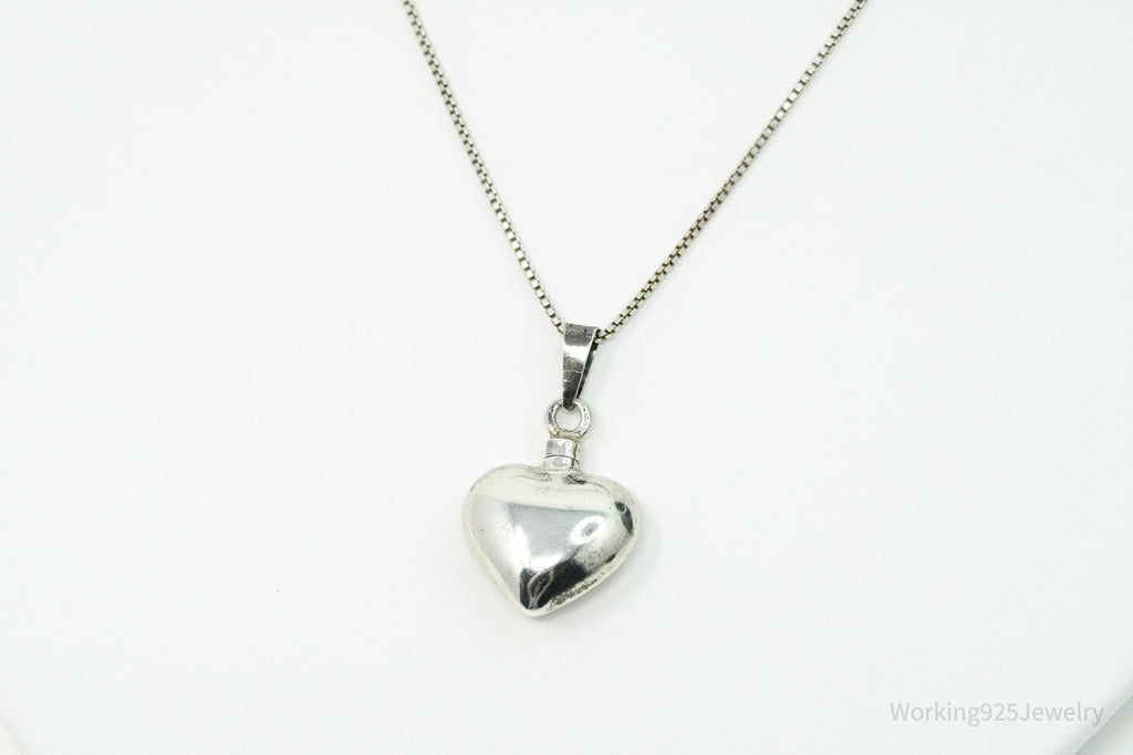 Vintage Mexican Heart Perfume Poison Bottle Sterling Silver Chain Necklace 20"