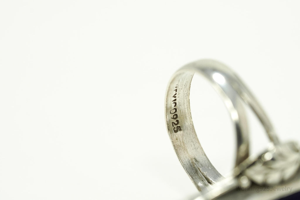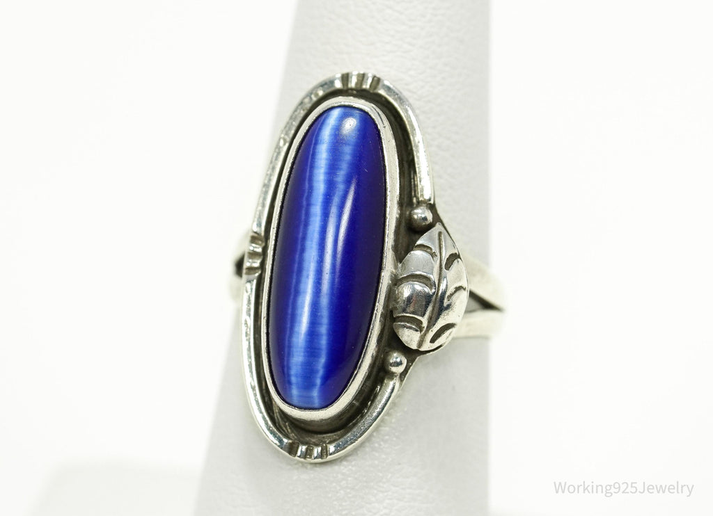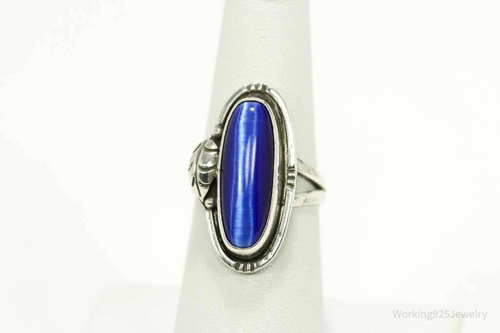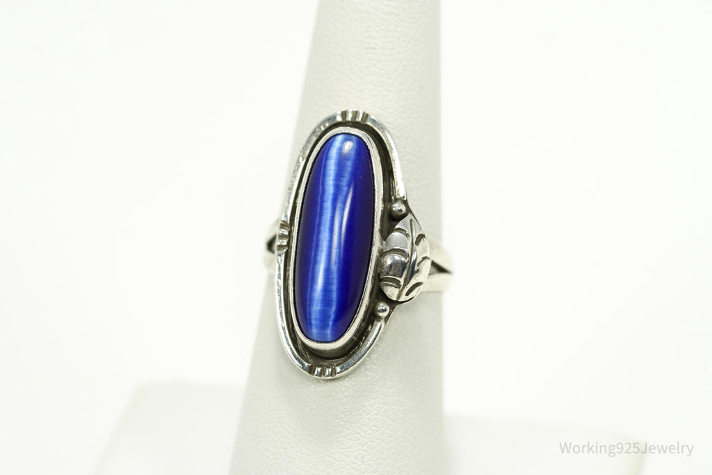 Vintage Mexico Blue Tigers Eye Sterling Silver Ring - Size 6.75