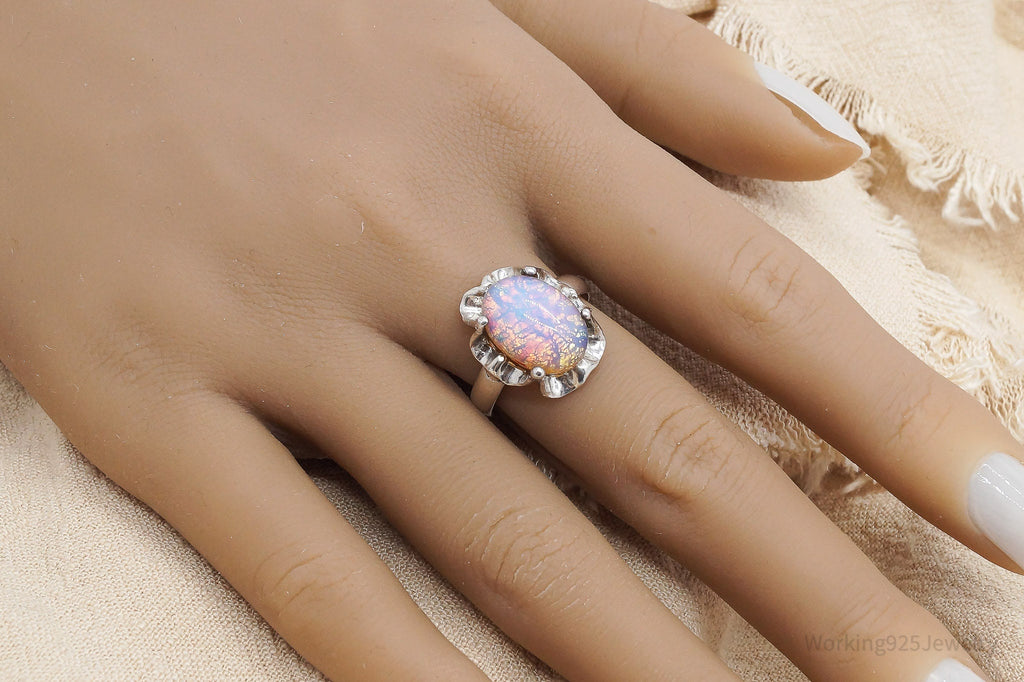 Vintage Mexico Faux Opal Modernist Style Sterling Silver Ring - Size 8.5