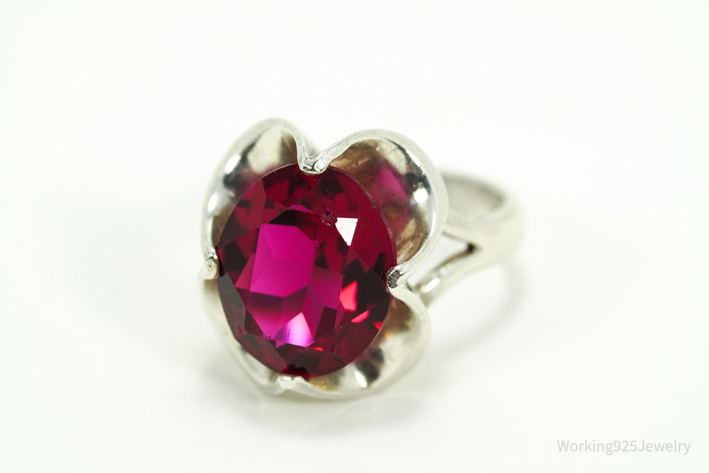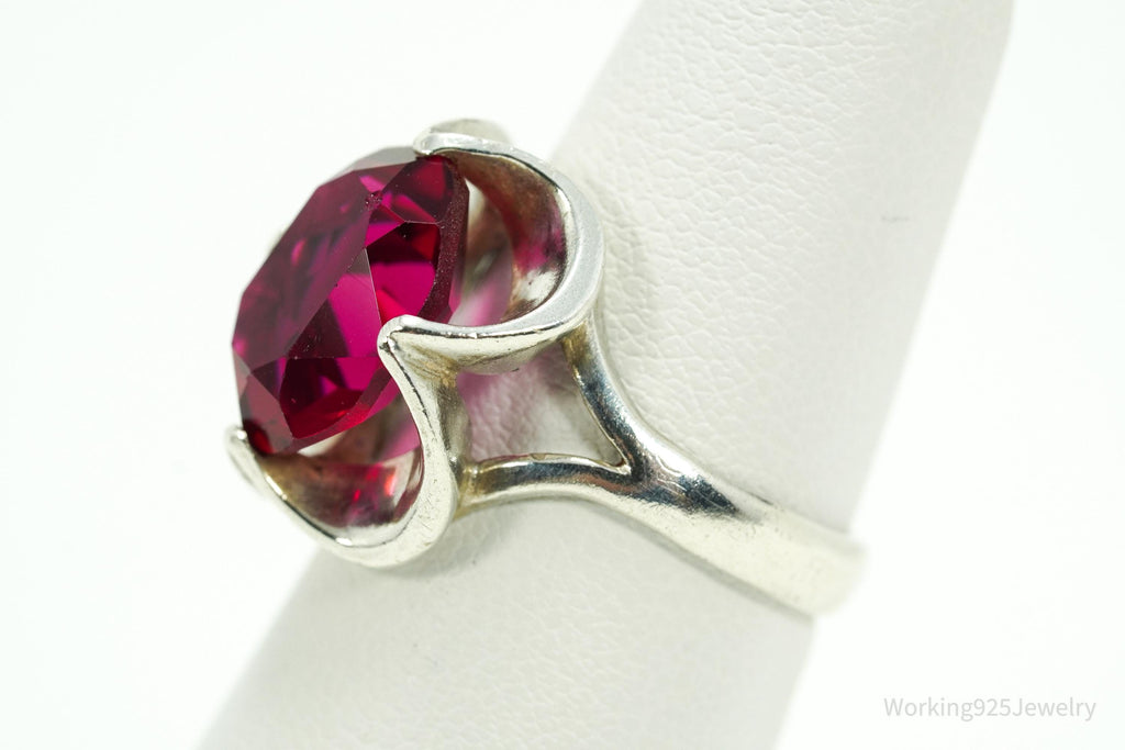 Vintage Mexico Modernist Red Paste Glass Stone Sterling Silver Ring - Size 5