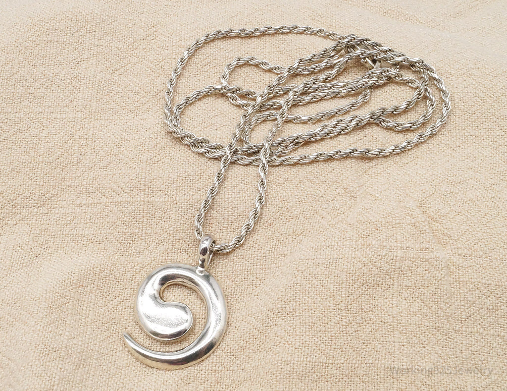 Vintage Native America Spiral Sterling Silver Necklace 24"