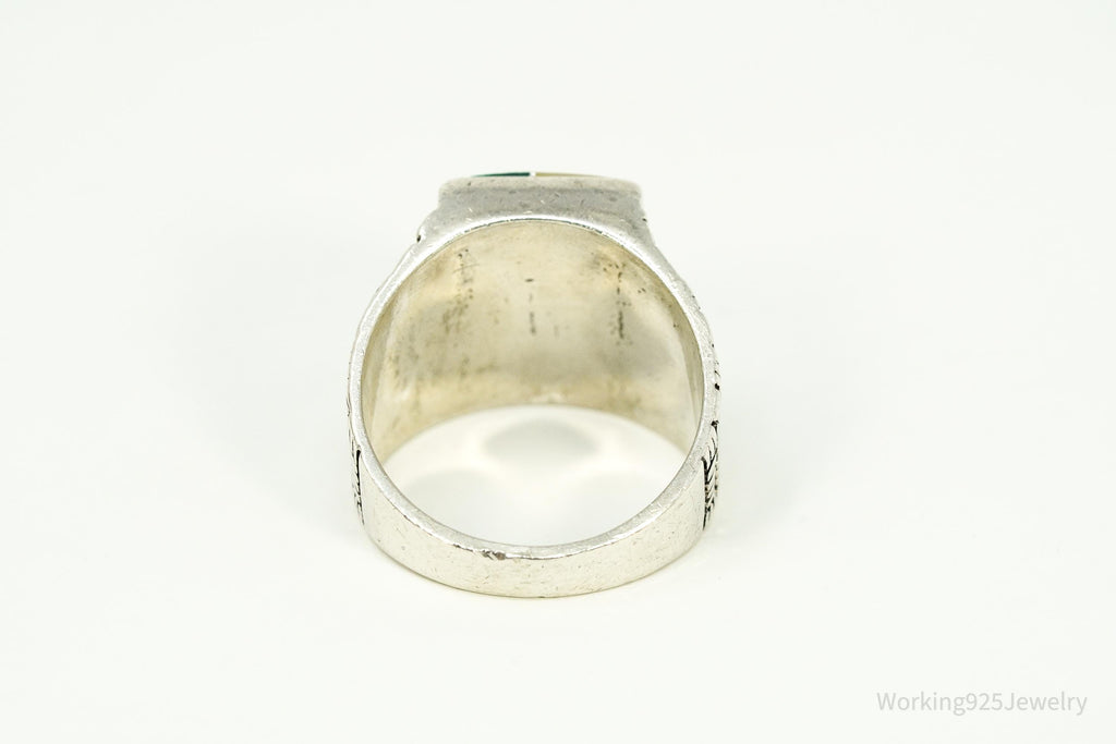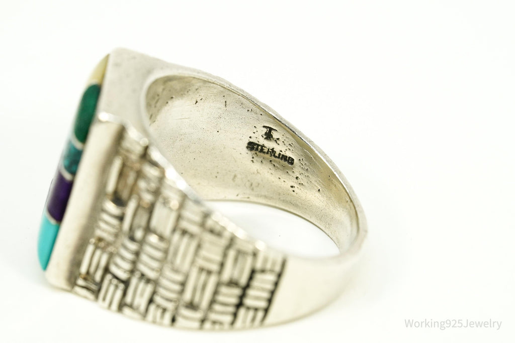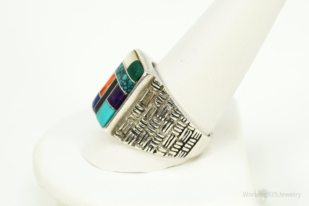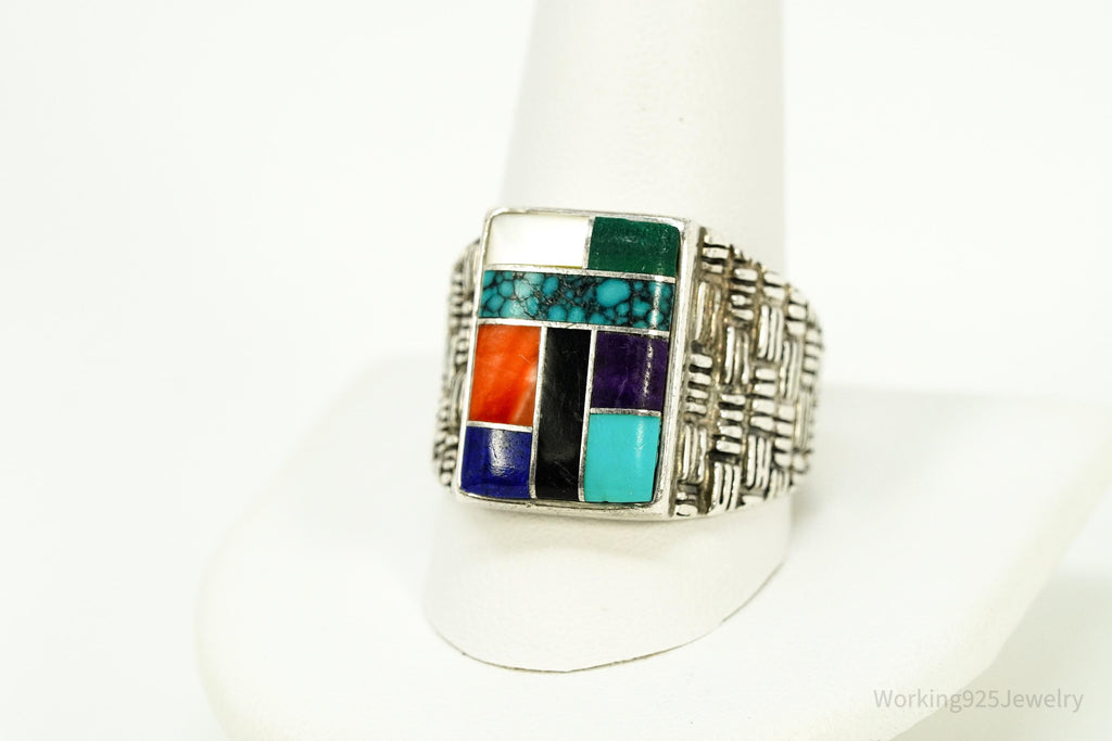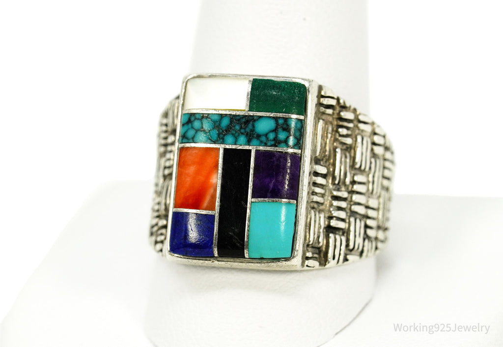 Vintage Native American Multi Gemstone Inlay Sterling Silver Ring - Size 12