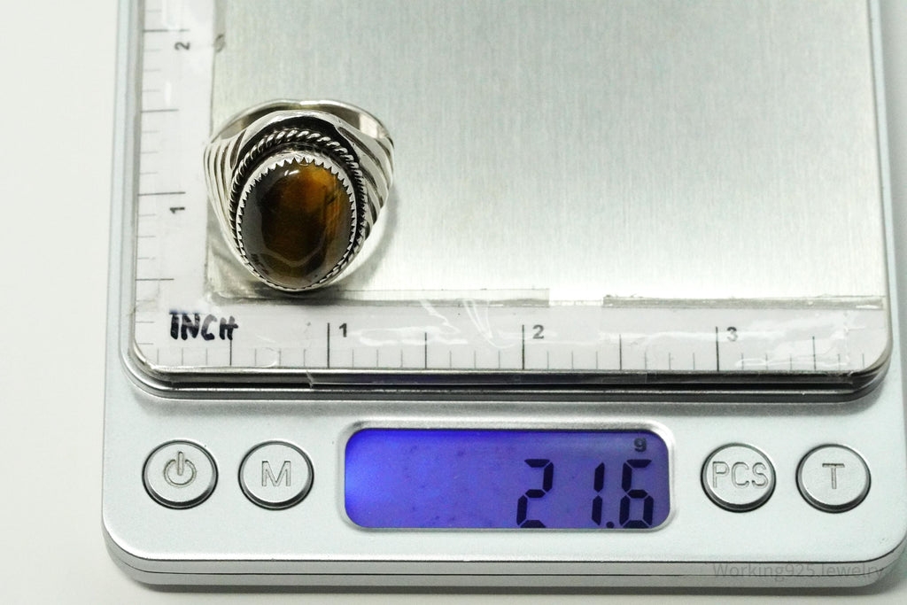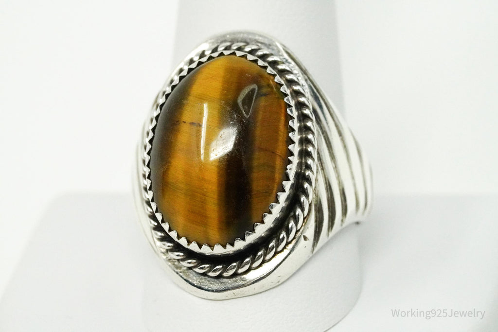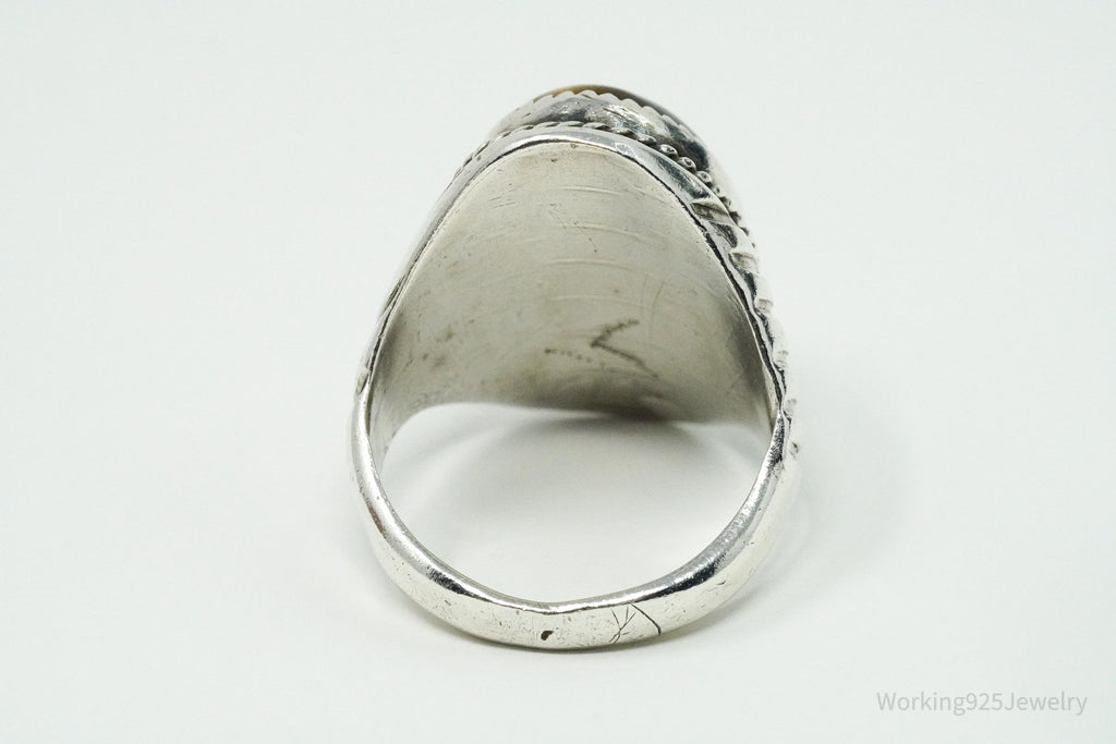 Vintage Native American Tiger's Eye Unsigned Silver Ring Size 12.25