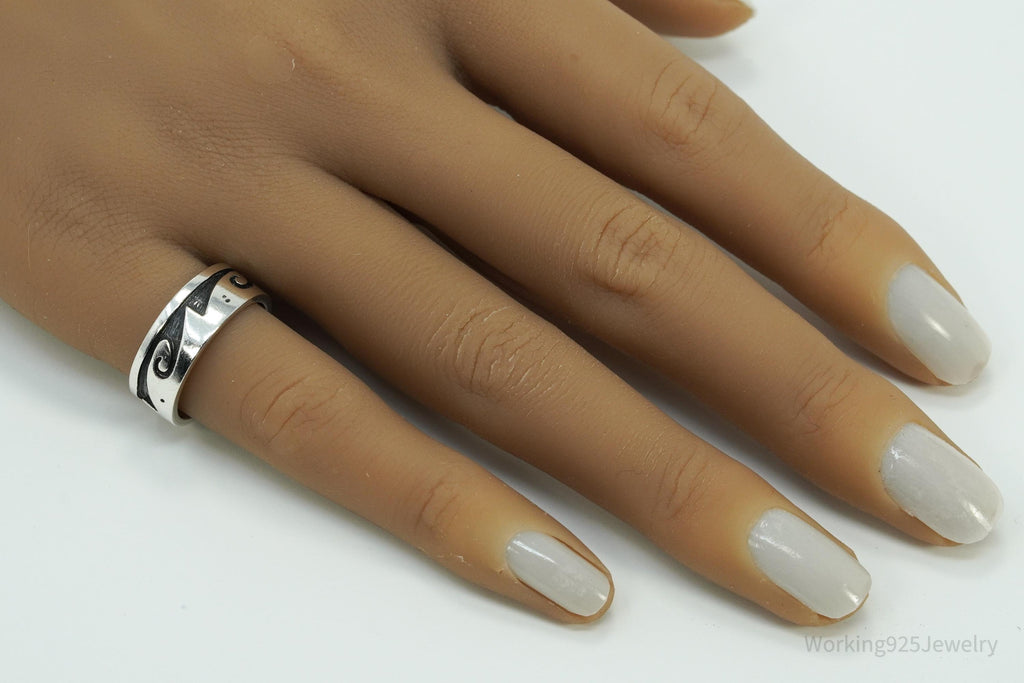 Vintage Native American Tribal Sterling Silver Band Ring - Size 6.5