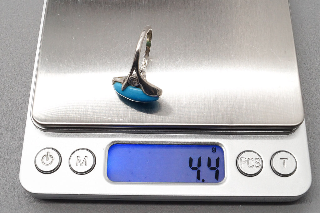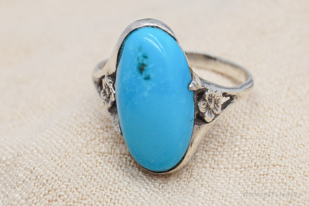 Vintage Native American Turquoise & Flowers Sterling Silver Ring - Size 8.75