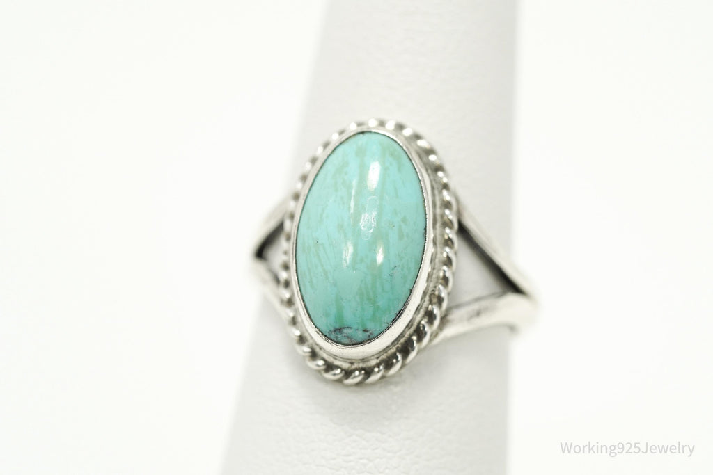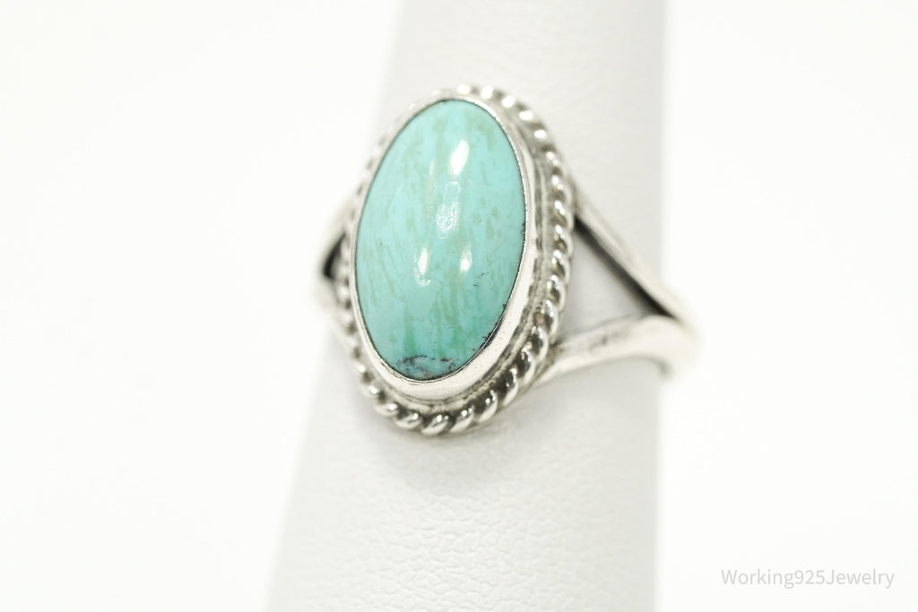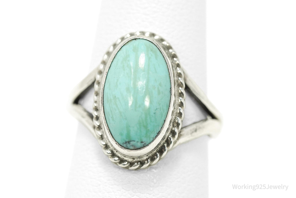 Vintage Native American Turquoise Unsigned Silver Ring - Size 6