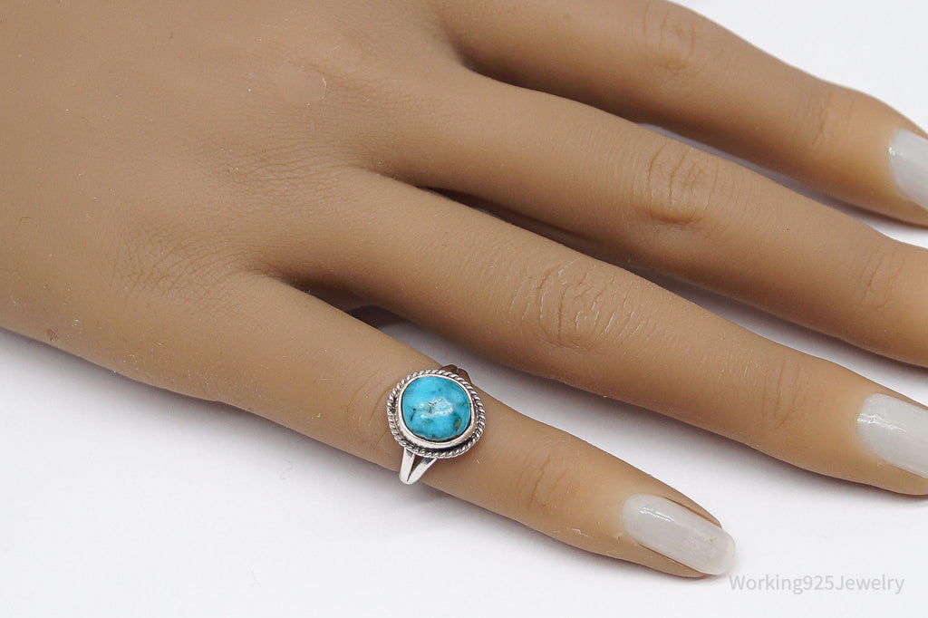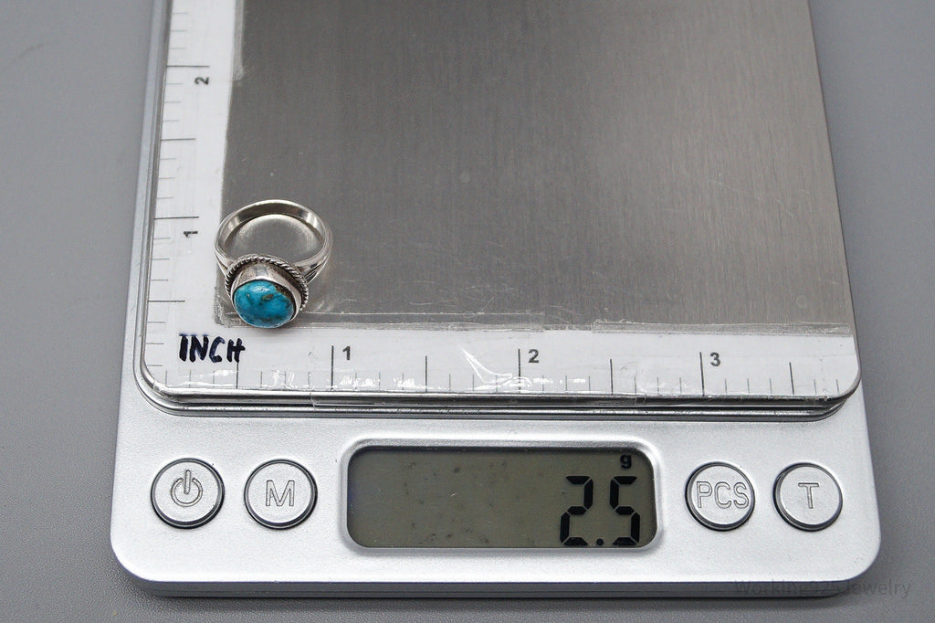 Vintage Native American Turquoise Unsigned Silver Ring - Size 2.75